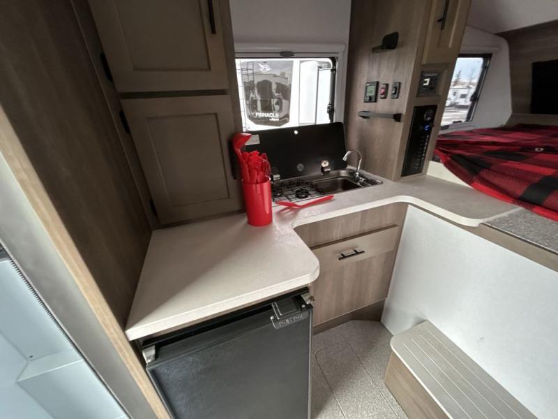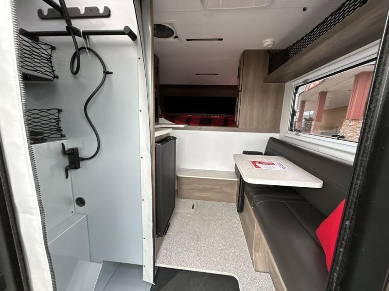 This true half-ton truck camper is lightweight, but not light on features! You can easily sleep up to five each night with the front queen bed and roll-over sofa, plus an optional bunk! The adventure locker/wet bathroom is a waterproof, modular space that doubles as a heated gear locker, making this space more versatile! In the kitchen you can make meals on the two burner stove with an integrated sink plus a Nova Kool 3.1 cu. ft. refrigerator with a freezer compartment. This unit also includes an Unbound Power Tower (UPT) with USB ports to keep you powered up, plus you can choose solar power options for off-grid capability!