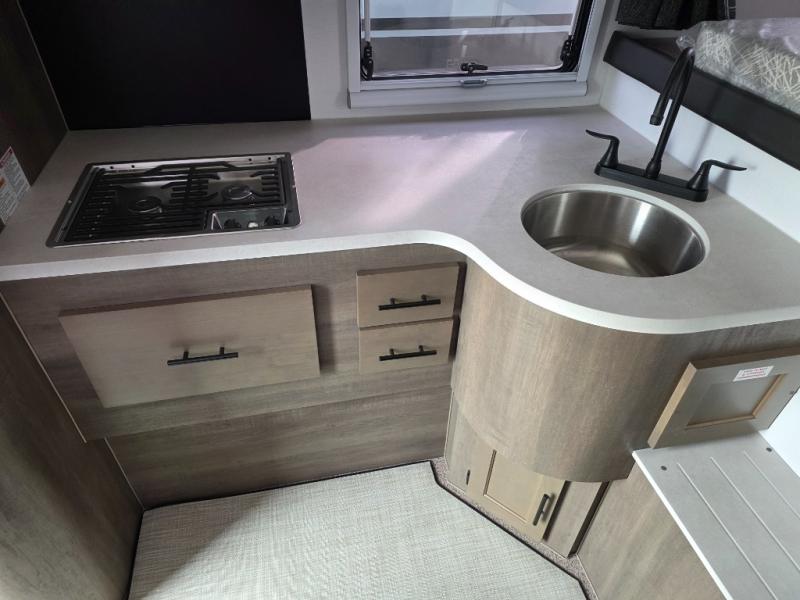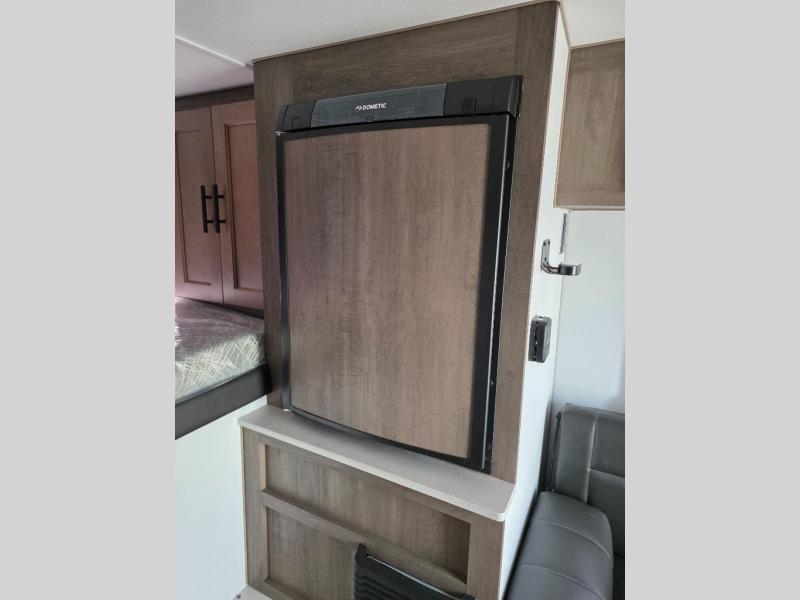 If you have one of today's heavy half-ton and larger long and short box trucks, then you need to get your hands on this truck camper! It is lightweight and affordable, plus it has a comfortable wet bath with a shower, Dometic toilet, power exhaust fan, and skylight. Get a good night's rest each night on the queen bed and keep your clothes looking their best stored in the wardrobe at the foot of the bed. You can even transform the roll-over sofa into a 42" x 68" bed for more sleeping space. You can fry up the catch of the day on the sealed two burner cooktop with residential grate and keep your beverages cold in the Dometic 3.5 cu. ft. refrigerator/freezer!
