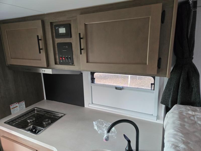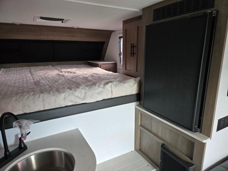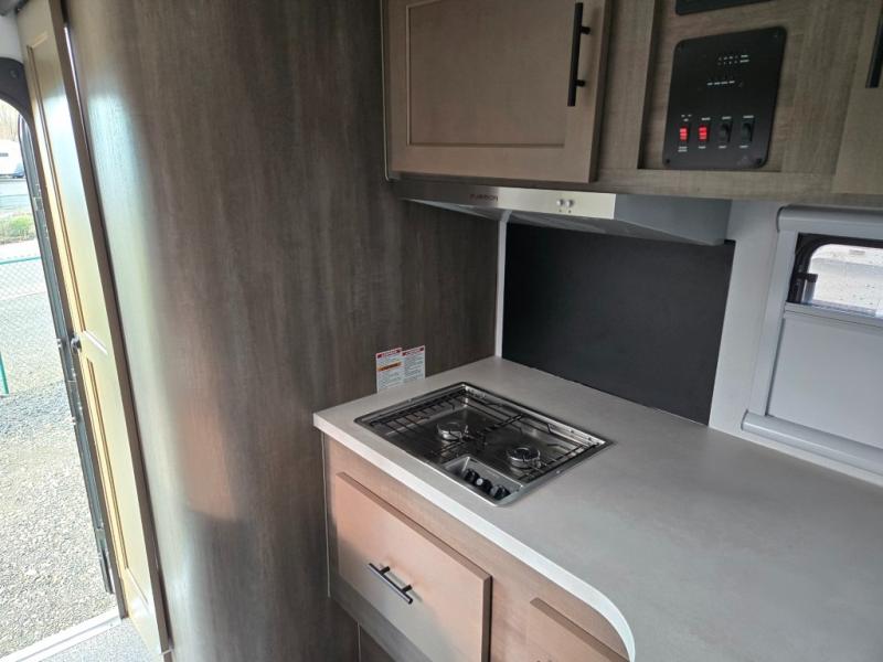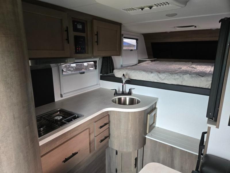 If you have one of today's heavy half-ton and larger long and short box trucks, then you need to get your hands on this truck camper! It is lightweight and affordable, plus it has a comfortable wet bath with a shower, Dometic toilet, power exhaust fan, and skylight. Get a good night's rest each night on the queen bed and keep your clothes looking their best stored in the wardrobe at the foot of the bed. You can even transform the roll-over sofa into a 42" x 68" bed for more sleeping space. You can fry up the catch of the day on the sealed two burner cooktop with residential grate and keep your beverages cold in the Dometic 3.5 cu. ft. refrigerator/freezer!