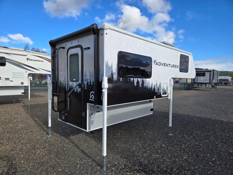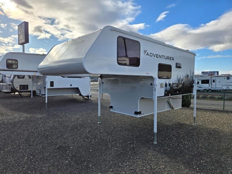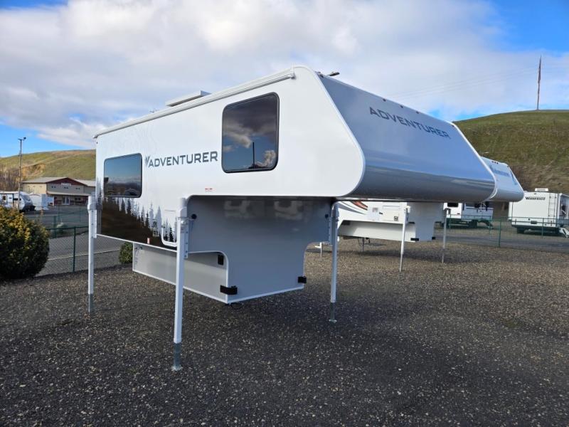 Each one of these Adventurer Manufacturing Inc. Adventurer truck campers is made to last with true four-season insulation and premium construction materials. The TRU weight transparency sticker lets you know exactly what you're getting when you choose these truck campers, and the Next Generation Happijac, manual jacks will make set up easier than ever. There are many interior comforts, including seamless edge countertops, a stainless steel sink, ample storage space, and more! There are also available options to choose to further customize your truck camper, some come take a look!