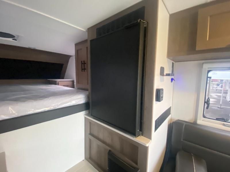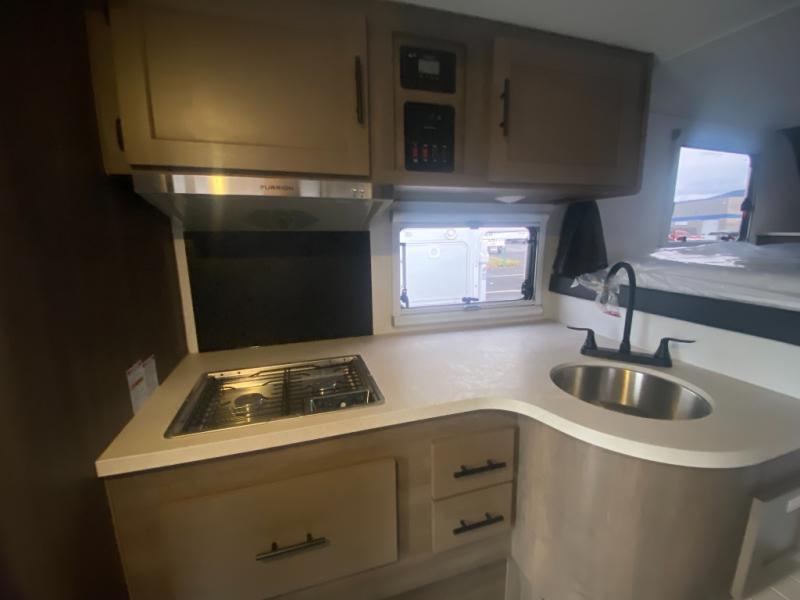 If you have one of today's heavy half-ton and larger long and short box trucks, then you need to get your hands on this truck camper! It is lightweight and affordable, plus it has a comfortable wet bath with a shower, Dometic toilet, power exhaust fan, and skylight. Get a good night's rest each night on the queen bed and keep your clothes looking their best stored in the wardrobe at the foot of the bed. You can even transform the roll-over sofa into a 42" x 68" bed for more sleeping space. You can fry up the catch of the day on the sealed two burner cooktop with residential grate and keep your beverages cold in the Dometic 3.5 cu. ft. refrigerator/freezer!