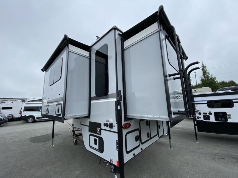 Plan to do and see it all in the Eagle Cap truck camper by Adventure Manufacturing Inc. There is TCC aluminum frame construction, a Lamilux 4000 automotive high gloss grey gel coat fiberglass exterior, and a one-piece thermo polyolefin TPO walk on roof for added durability. The thermal pane windows, four-season insulation, plus enclosed, insulated and heated tanks will allow you to camp year around. Inside, you'll find hardwood cabinet doors, industrial grade vinyl flooring, flame treated fabric upholstery, and thermoformed laminate seamless edge countertops to name a few comforts. The Eagle Cap also includes Next Generation happijac wireless remote electric jacks, a basement slide out storage tray, a battery compartment with dual disconnect, a fully opening acrylic moon roof with a screen and shade, plus many more stand-out features!
