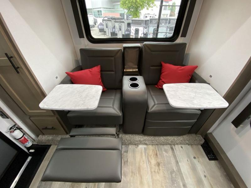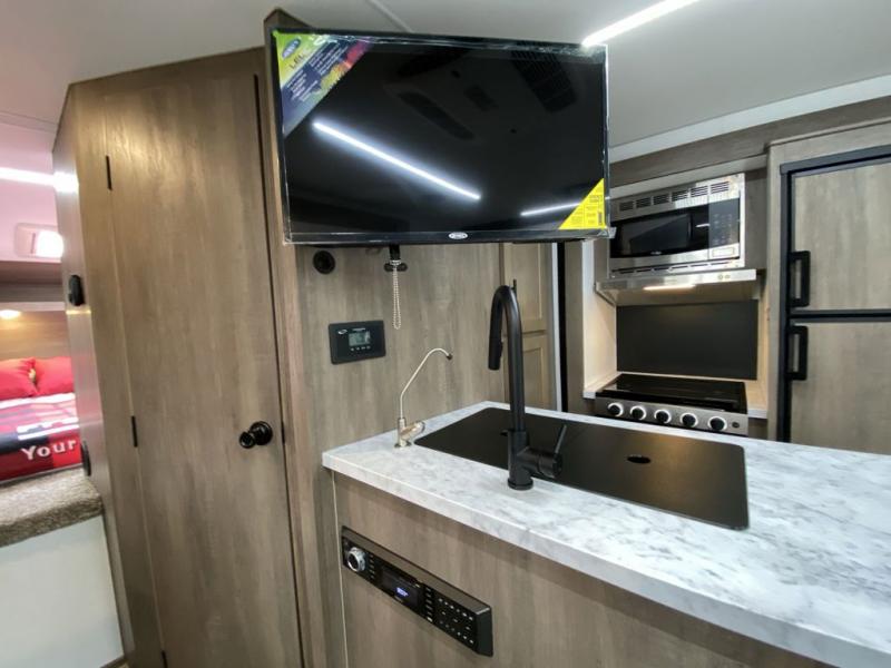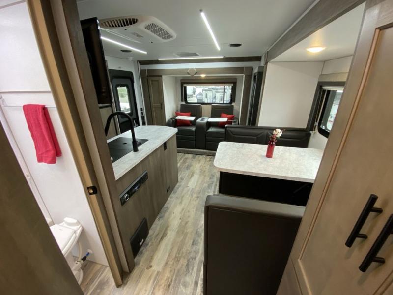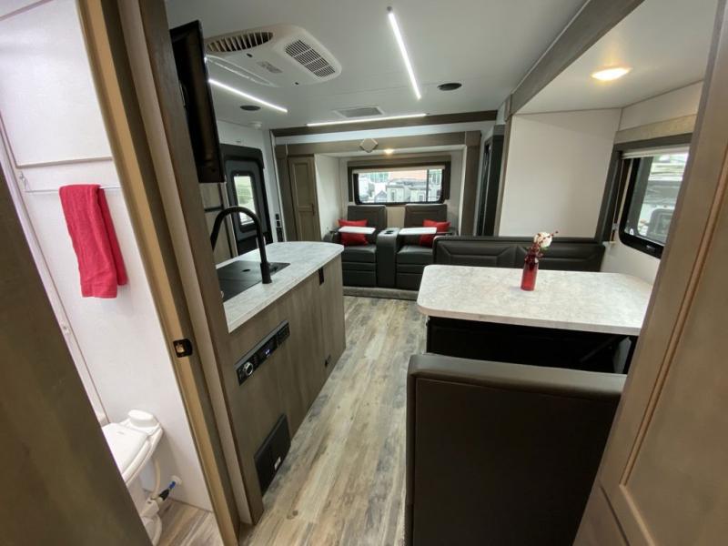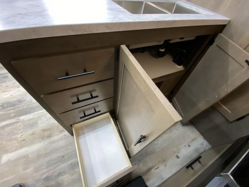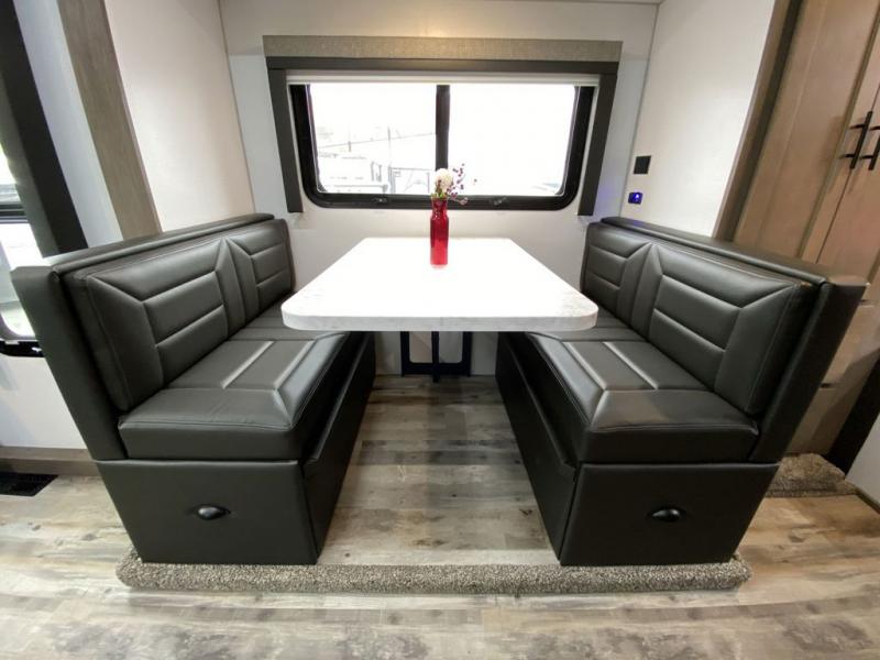 You won't believe the amount of space and comfort you'll find in this truck camper. The triple slides provide more space to relax on the sofa slide out, cook at the counter peninsula, and dine a the booth dinette! A dry bath with a separate fiberglass shower, large medicine cabinet with a mirrored door, and Dometic toilet will let you freshen up each day. You'll feel right at home in the front bedroom that includes a queen bed, LED bedroom reading lights, and storage space for your things.