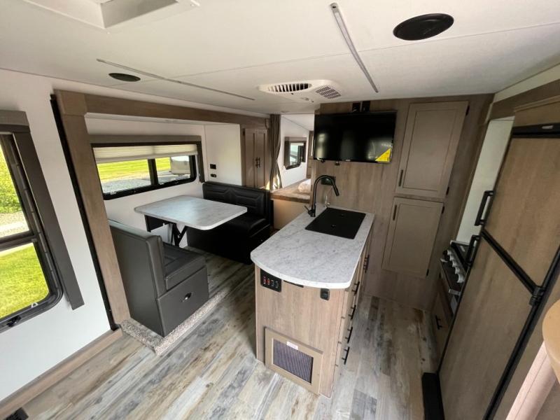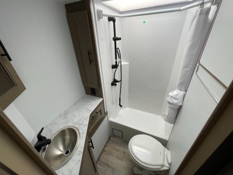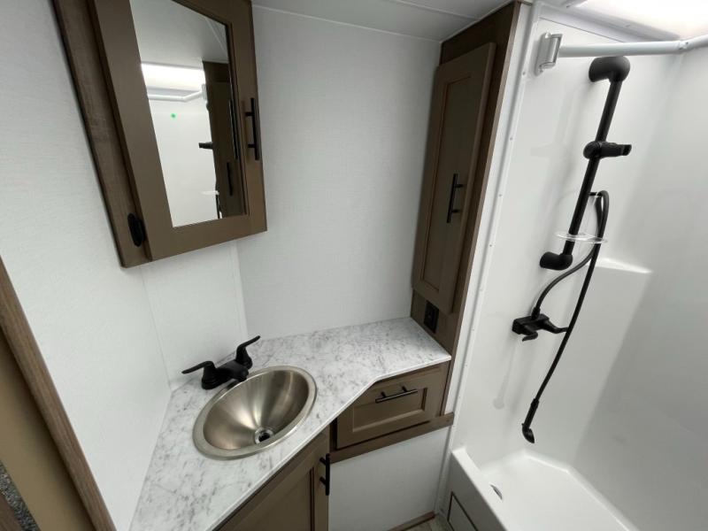 You won't believe the amount of space and comfort you'll find in this truck camper. The triple slides provide more space to relax on the sofa slide out, cook at the counter peninsula, and dine a the booth dinette! A dry bath with a separate fiberglass shower, large medicine cabinet with a mirrored door, and Dometic toilet will let you freshen up each day. You'll feel right at home in the front bedroom that includes a queen bed, LED bedroom reading lights, and storage space for your things.