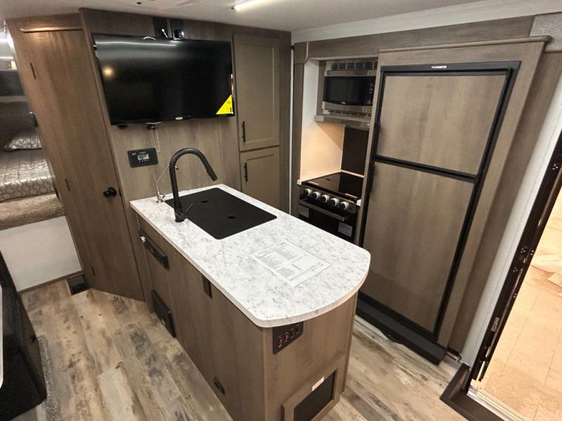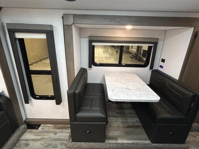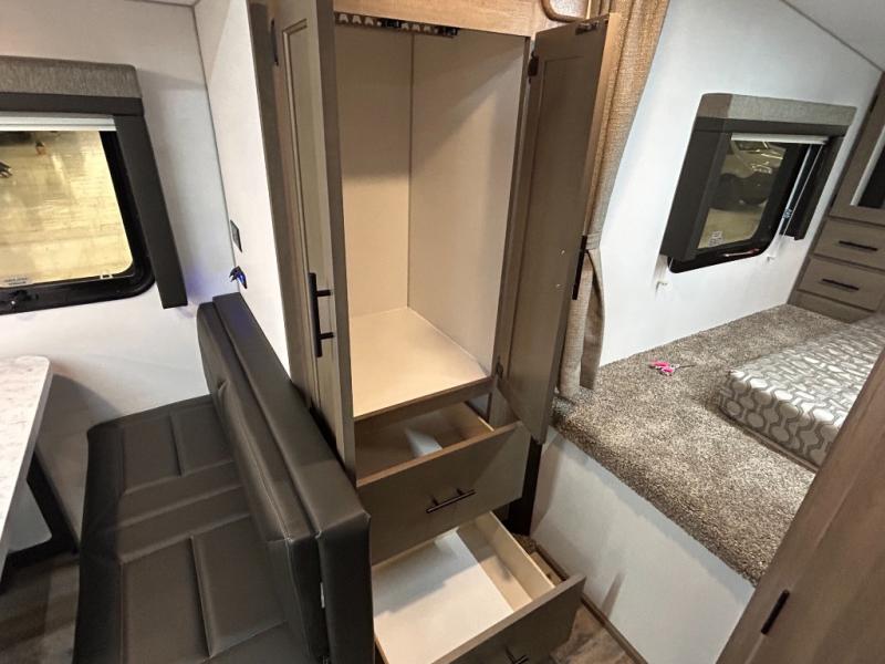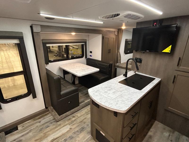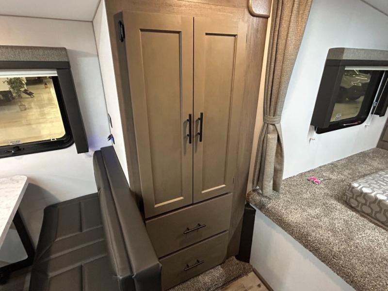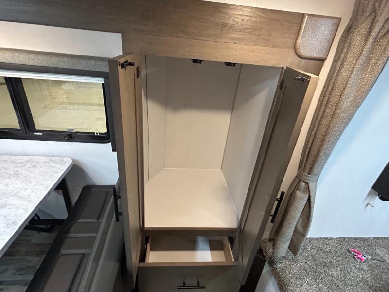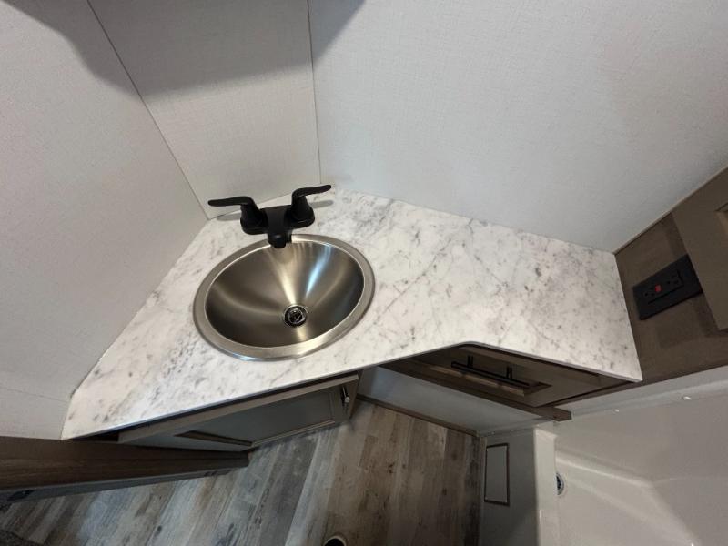 You won't believe the amount of space and comfort you'll find in this truck camper. The triple slides provide more space to relax on the sofa slide out, cook at the counter peninsula, and dine a the booth dinette! A dry bath with a separate fiberglass shower, large medicine cabinet with a mirrored door, and Dometic toilet will let you freshen up each day. You'll feel right at home in the front bedroom that includes a queen bed, LED bedroom reading lights, and storage space for your things.