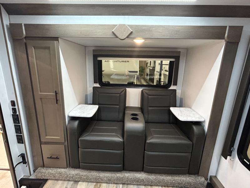 Plan to do and see it all in the Eagle Cap truck camper by Adventure Manufacturing Inc. There is TCC aluminum frame construction, a Lamilux 4000 automotive high gloss grey gel coat fiberglass exterior, and a one-piece thermo polyolefin TPO walk on roof for added durability. The thermal pane windows, four-season insulation, plus enclosed, insulated and heated tanks will allow you to camp year around. Inside, you'll find hardwood cabinet doors, industrial grade vinyl flooring, flame treated fabric upholstery, and thermoformed laminate seamless edge countertops to name a few comforts. The Eagle Cap also includes Next Generation happijac wireless remote electric jacks, a basement slide out storage tray, a battery compartment with dual disconnect, a fully opening acrylic moon roof with a screen and shade, plus many more stand-out features!