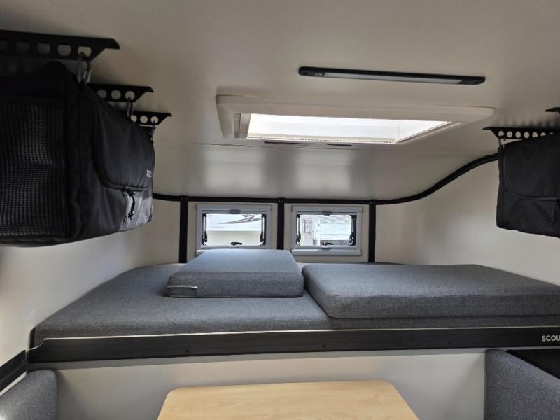 Start camping on your terms with any one of these Adventurer Manufacturing Inc. Scout truck campers! Lightweight, highly durable, and energy efficient. They feature decorative interior composite panel for more durability and low maintenance. An aluminum exoskeleton framing and a full composite substrate construction will protect your unit during harsh weather, and you can keep your electronics charged with the USB ports. The ratchet tie down system provides precise tension control and high load capacity. Come choose the basecamp that best suits your adventurous lifestyle today!