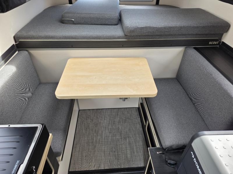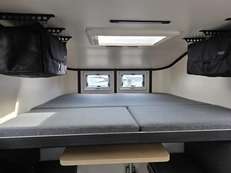 Pack up your gear and go exploring in this truck camper! Adventure without limits with everything you need stored in the lockable 5 cu. ft. gear locker and optional hanging storage bags. You can collect water on the go with the Lifesaver portable 4.9 gal Jerry can with charcoal filter and spray wand. The Unbound power tower and 190W solar panel offers dependable energy so you can charge your batteries, keep your food cold, and even your lights on all at one time. The four person dinette comes with sleeper conversion so others can join in on the fun and have a comfortable place to lay their head at night!