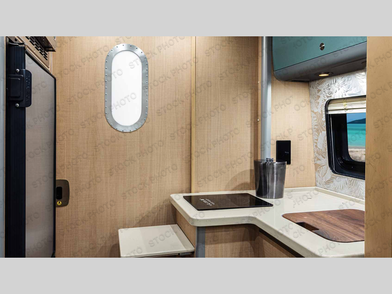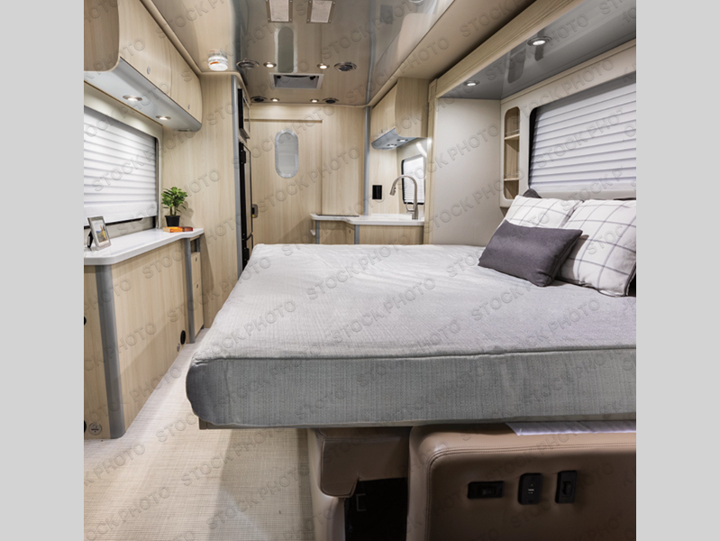 With the Atlas 25MS Class B+ diesel motorhome by Airstream, you not only get an enduring Airstream design, conveniences and luxury features, but also the proven Mercedes-Benz safety systems and performance. The coach is built with Azdel composite roof, floor, and wall material, a vacuum-bonded aluminum framed floor, radius walls, a fiberglass crowned roof for extra headroom, trimless smooth fiberglass body seams, and molded fiberglass front and rear caps. And the Mercedes-Benz 2.0L turbo charged 4-cyliner high-output diesel engine will power your many excursions! The main cabin offers adjustable LED lighting, flush-mount cabinet hardware and soft close doors, a Froli ergonomic bed support system for a good night's sleep. You will enjoy Ultraleather seating, USB charging ports for your electronics, marine woven synthetic flooring, and matte finish laminate cabinetry to mention a few highlights.