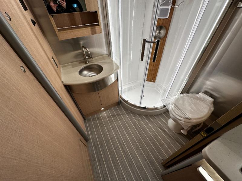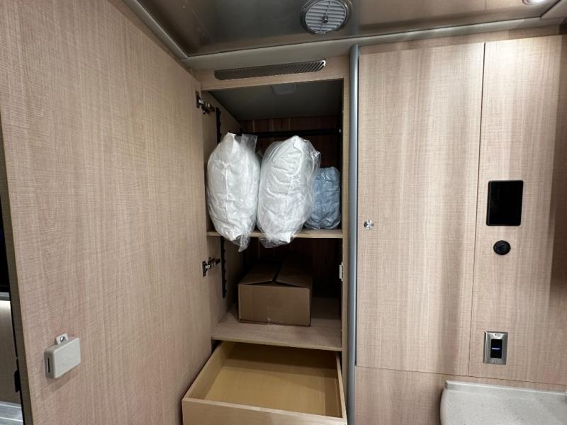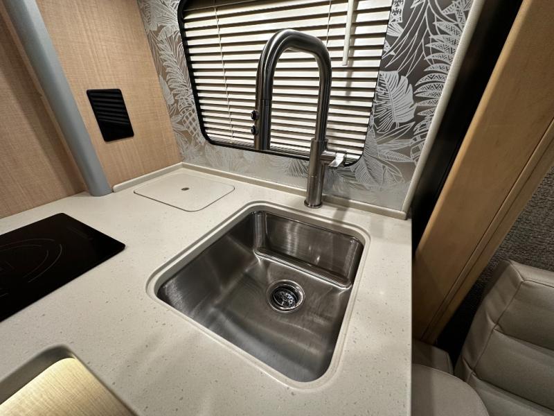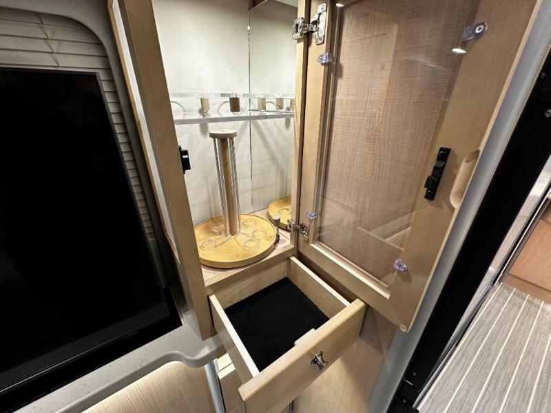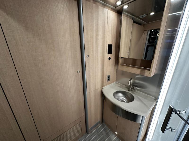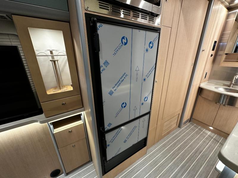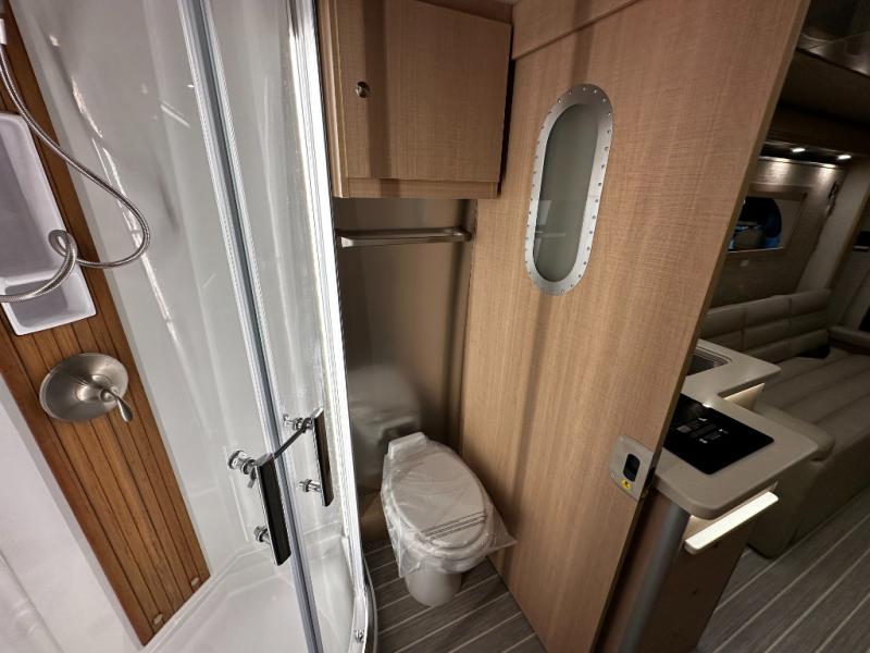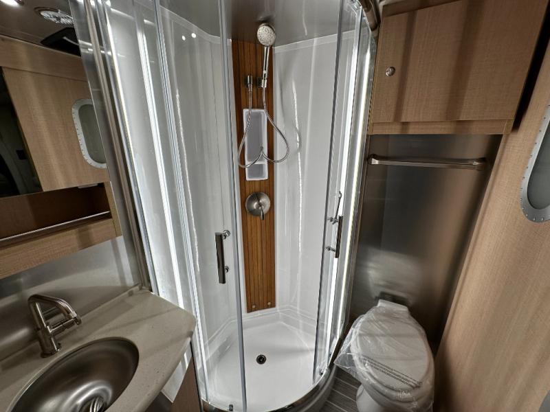 Step inside and experience Airstream’s most refined touring coach to date. Premium handcrafted cabinetry, modern European-inspired finishes, and expansive windows create an open, upscale living space that feels more like a boutique hotel suite than a motorhome. The rear power sofa effortlessly converts into a spacious sleeping area, while the luxurious bathroom features a full dry bath with upscale fixtures and residential comfort—rare in a Class B.