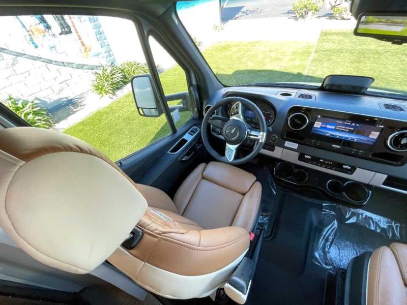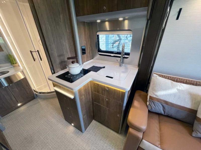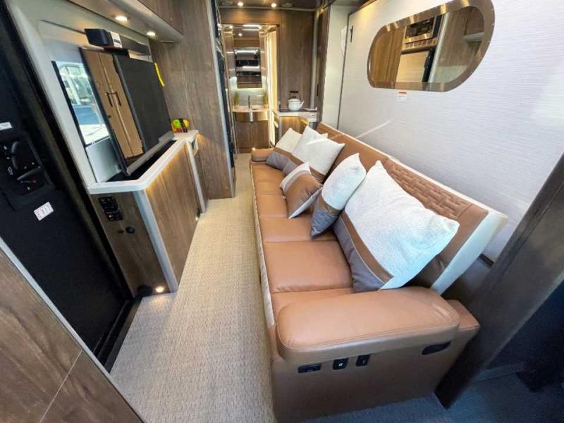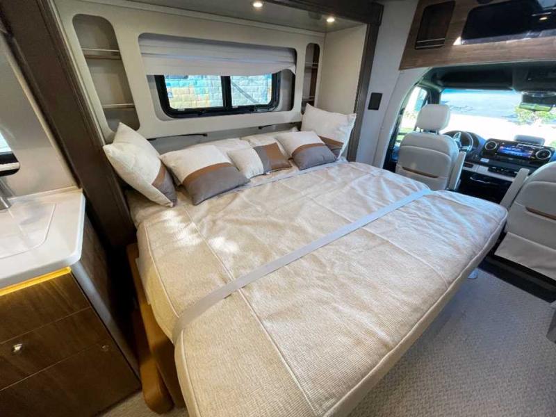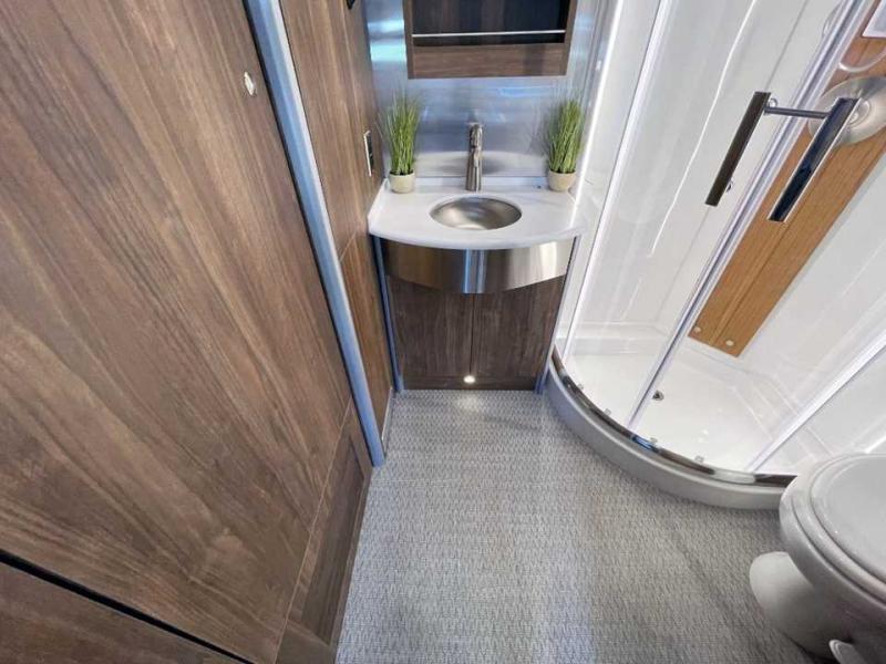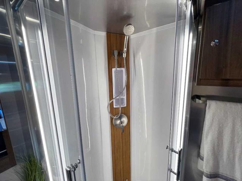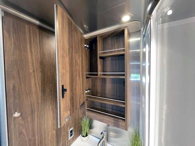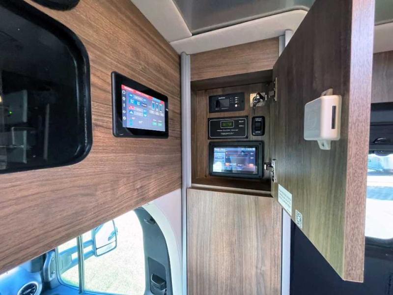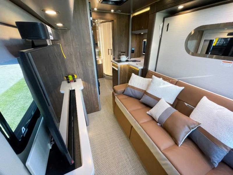 With the Atlas 25MS Class B+ diesel motorhome by Airstream, you not only get an enduring Airstream design, conveniences and luxury features, but also the proven Mercedes-Benz safety systems and performance. The coach is built with Azdel composite roof, floor, and wall material, a vacuum-bonded aluminum framed floor, radius walls, a fiberglass crowned roof for extra headroom, trimless smooth fiberglass body seams, and molded fiberglass front and rear caps. And the Mercedes-Benz 2.0L turbo charged 4-cyliner high-output diesel engine will power your many excursions! The main cabin offers adjustable LED lighting, flush-mount cabinet hardware and soft close doors, a Froli ergonomic bed support system for a good night's sleep. You will enjoy Ultraleather seating, USB charging ports for your electronics, marine woven synthetic flooring, and matte finish laminate cabinetry to mention a few highlights.