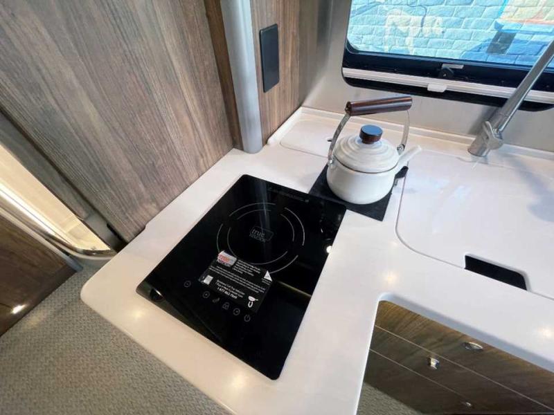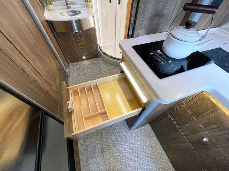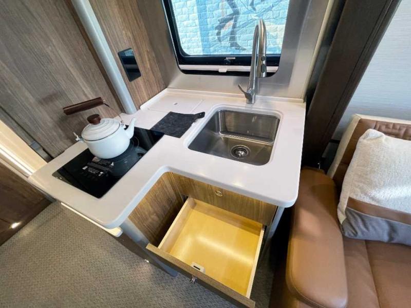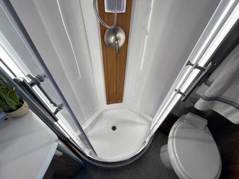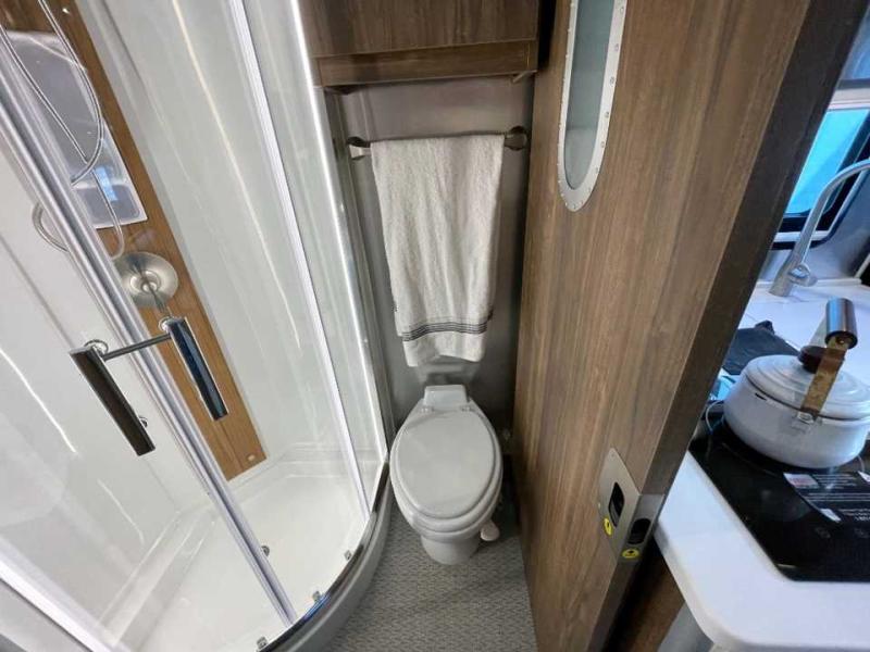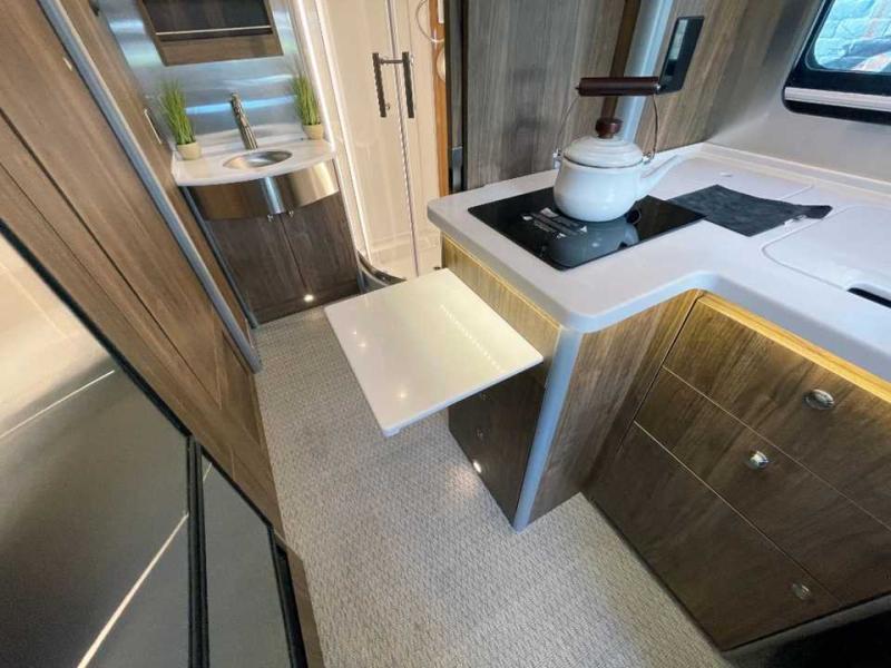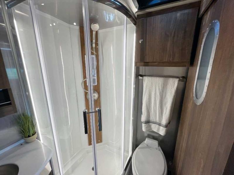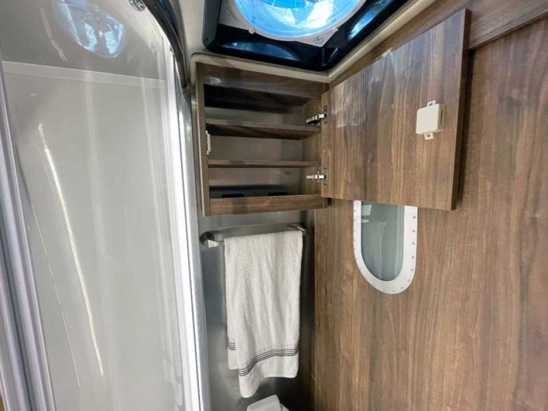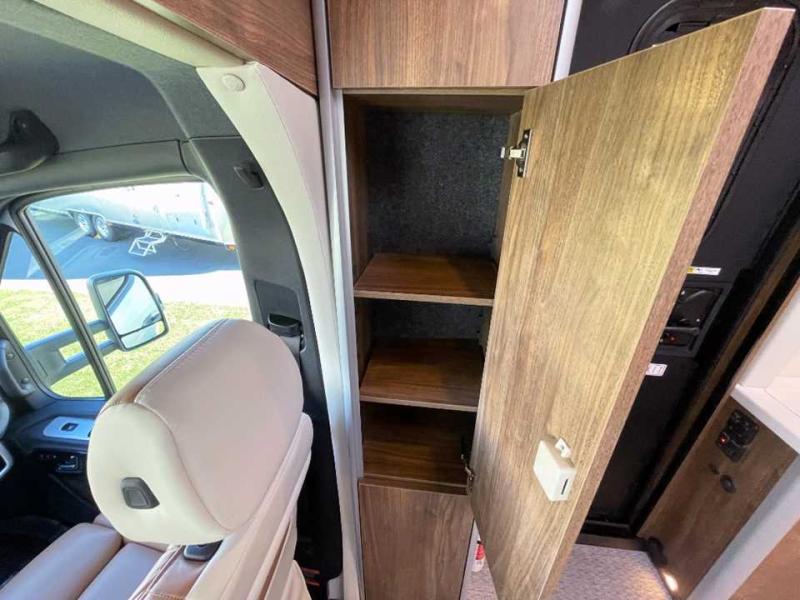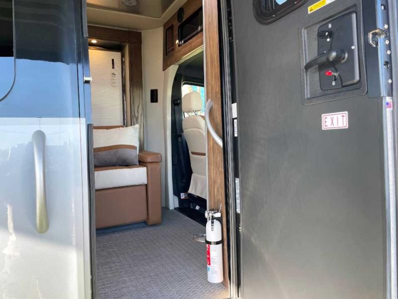 With the Atlas 25MS Class B+ diesel motorhome by Airstream, you not only get an enduring Airstream design, conveniences and luxury features, but also the proven Mercedes-Benz safety systems and performance. The coach is built with Azdel composite roof, floor, and wall material, a vacuum-bonded aluminum framed floor, radius walls, a fiberglass crowned roof for extra headroom, trimless smooth fiberglass body seams, and molded fiberglass front and rear caps. And the Mercedes-Benz 2.0L turbo charged 4-cyliner high-output diesel engine will power your many excursions! The main cabin offers adjustable LED lighting, flush-mount cabinet hardware and soft close doors, a Froli ergonomic bed support system for a good night's sleep. You will enjoy Ultraleather seating, USB charging ports for your electronics, marine woven synthetic flooring, and matte finish laminate cabinetry to mention a few highlights.