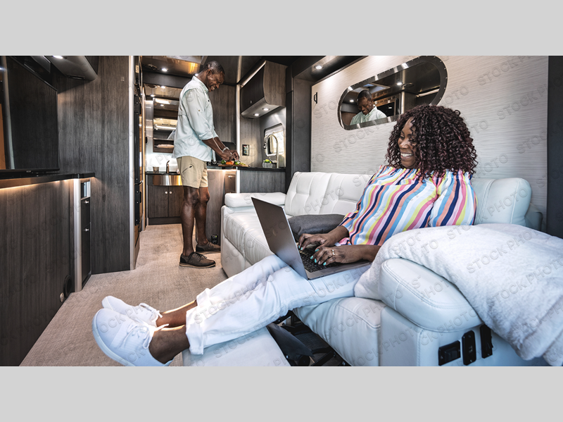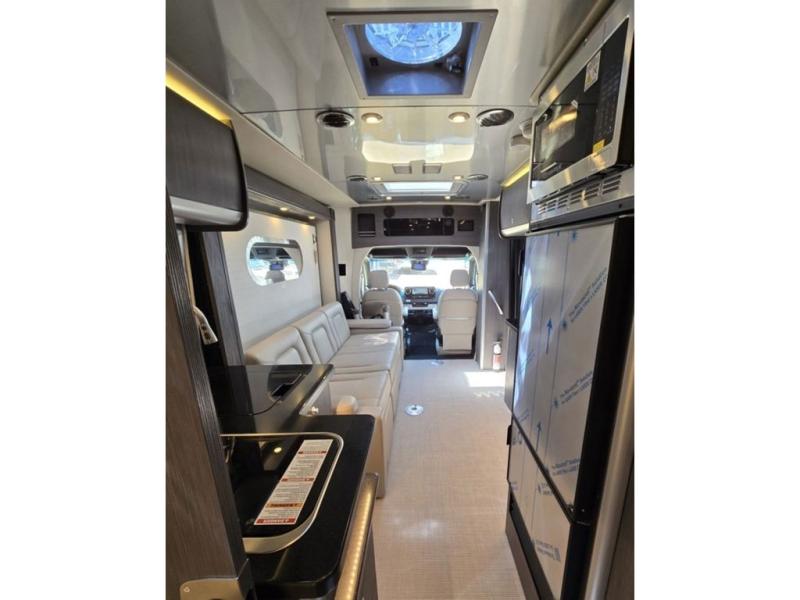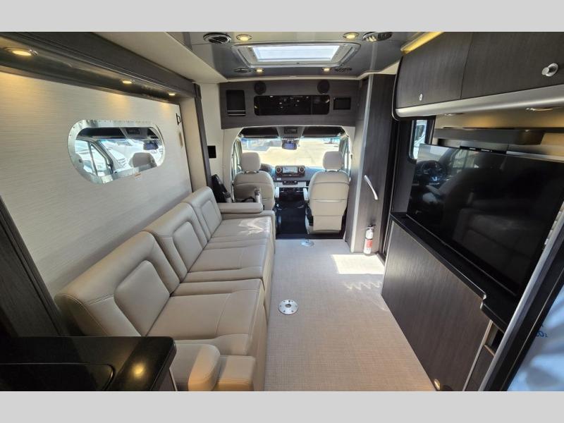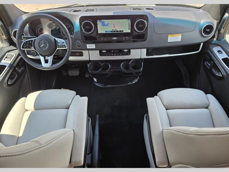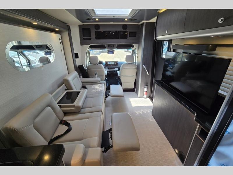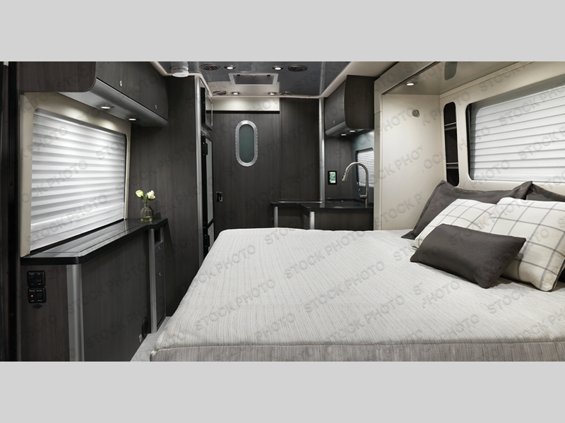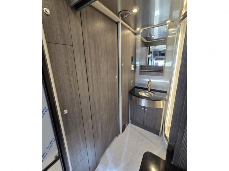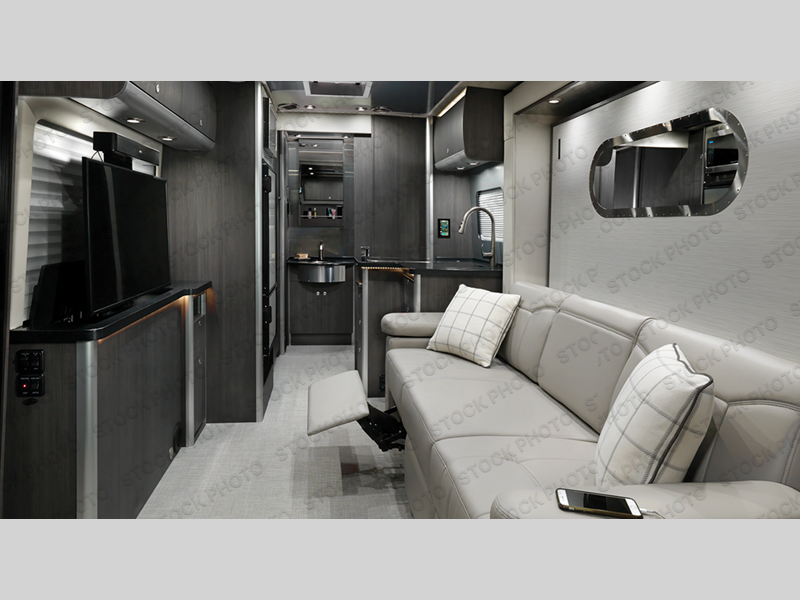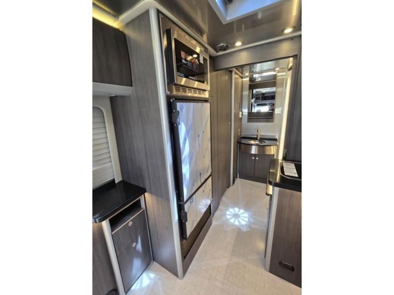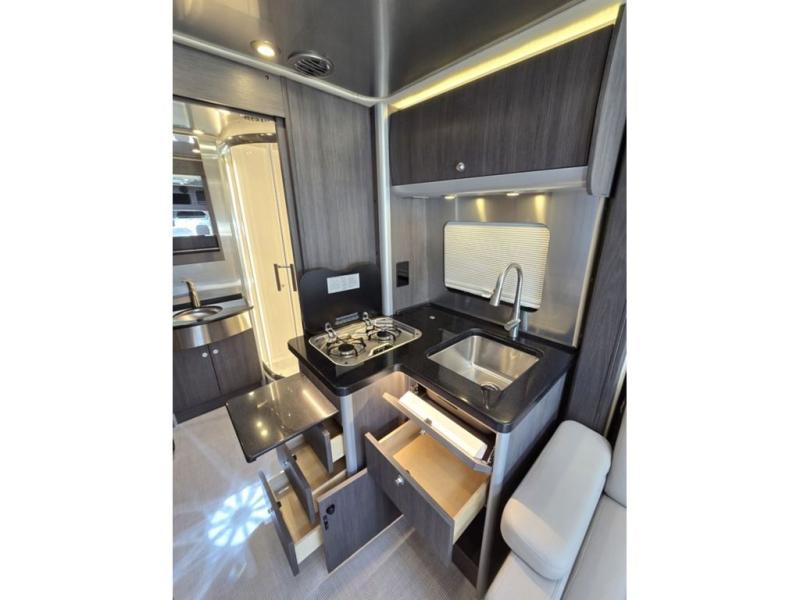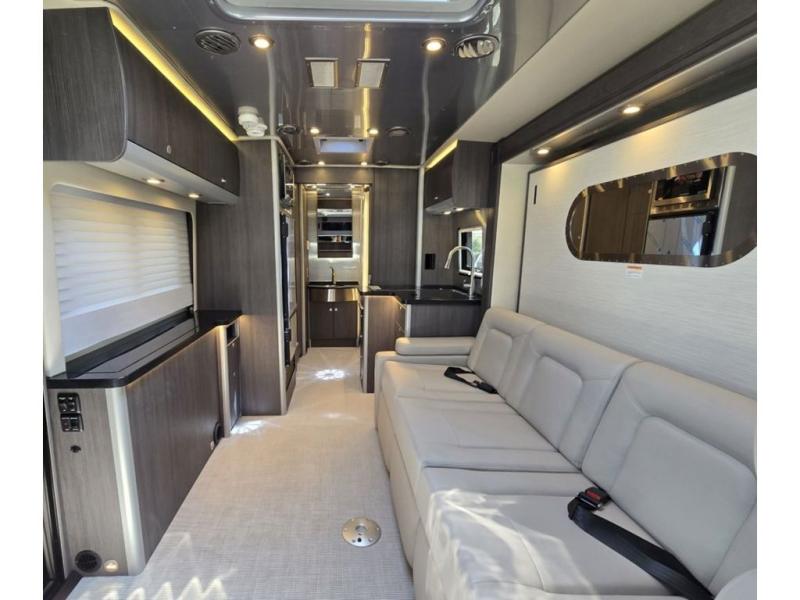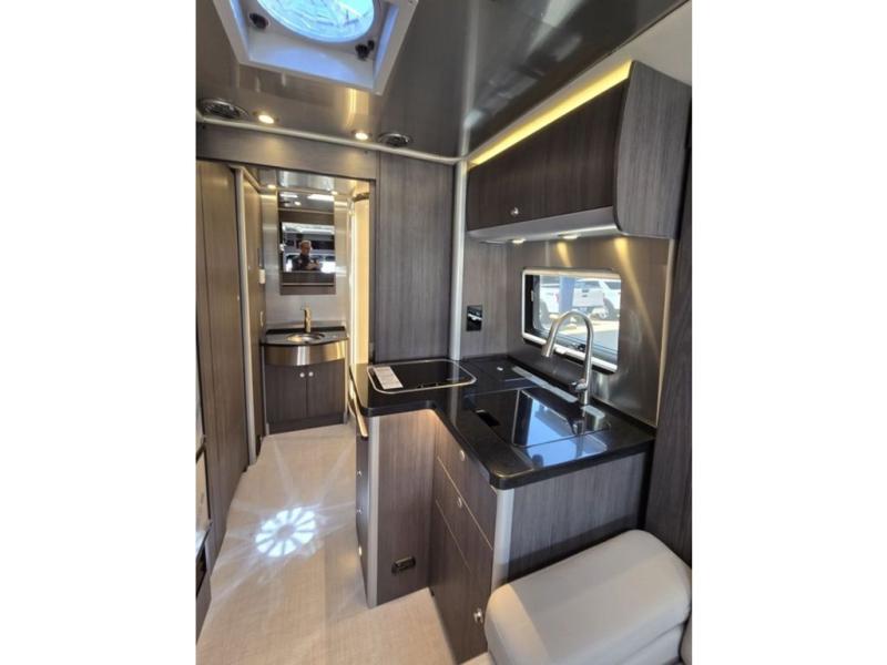 With the Atlas Class B+ diesel motorhome by Airstream, you not only get an enduring Airstream design, conveniences and luxury features, but also the proven Mercedes-Benz safety systems and performance. The coach is built with Azdel composite roof, floor, and wall material, a vacuum-bonded aluminum framed floor, radius walls, a fiberglass crowned roof for extra headroom, trimless smooth fiberglass body seams, and molded fiberglass front and rear caps. And the Mercedes-Benz 2.0L turbo charged 4-cyliner high-output diesel engine will power your many excursions! The main cabin offers adjustable LED lighting, flush-mount cabinet hardware and soft close doors, a Froli ergonomic bed support system for a good night's sleep. You will enjoy Ultraleather seating, USB charging ports for your electronics, marine woven synthetic flooring, and matte finish laminate cabinetry to mention a few highlights.