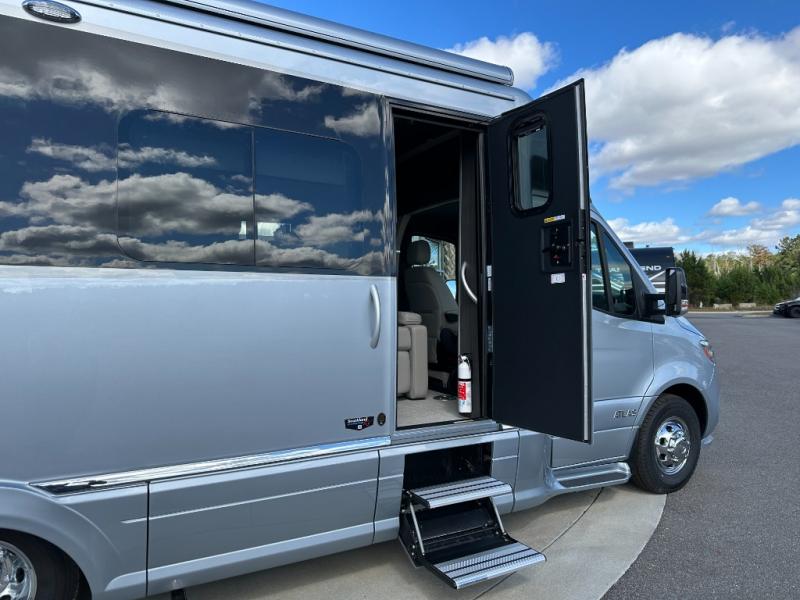 With the Atlas Class B+ diesel motorhome by Airstream, you not only get an enduring Airstream design, conveniences and luxury features, but also the proven Mercedes-Benz safety systems and performance. The coach is built with Azdel composite roof, floor, and wall material, a vacuum-bonded aluminum framed floor, radius walls, a fiberglass crowned roof for extra headroom, trimless smooth fiberglass body seams, and molded fiberglass front and rear caps. And the Mercedes-Benz 2.0L turbo charged 4-cyliner high-output diesel engine will power your many excursions! The main cabin offers adjustable LED lighting, flush-mount cabinet hardware and soft close doors, a Froli ergonomic bed support system for a good night's sleep. You will enjoy Ultraleather seating, USB charging ports for your electronics, marine woven synthetic flooring, and matte finish laminate cabinetry to mention a few highlights.