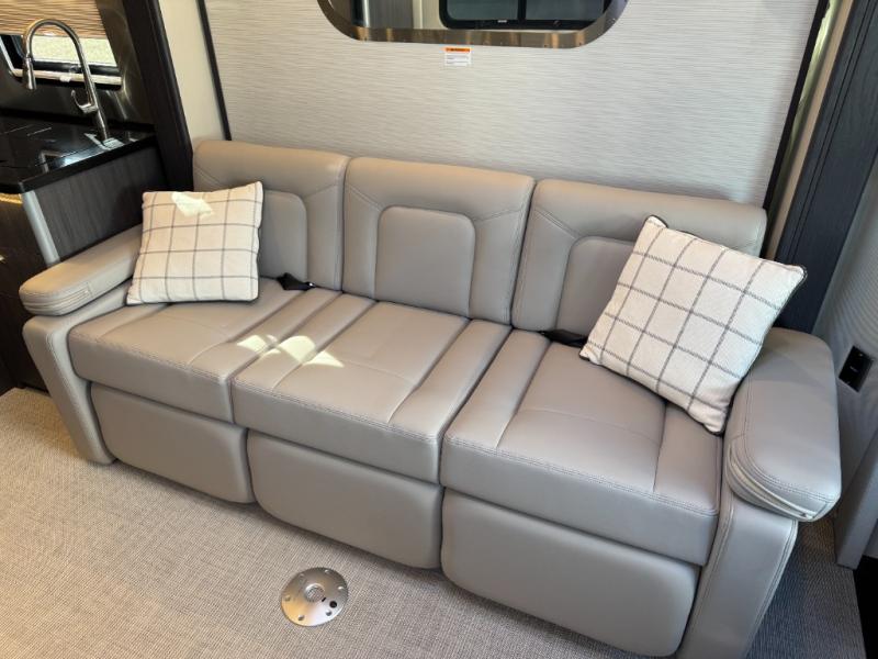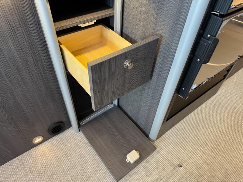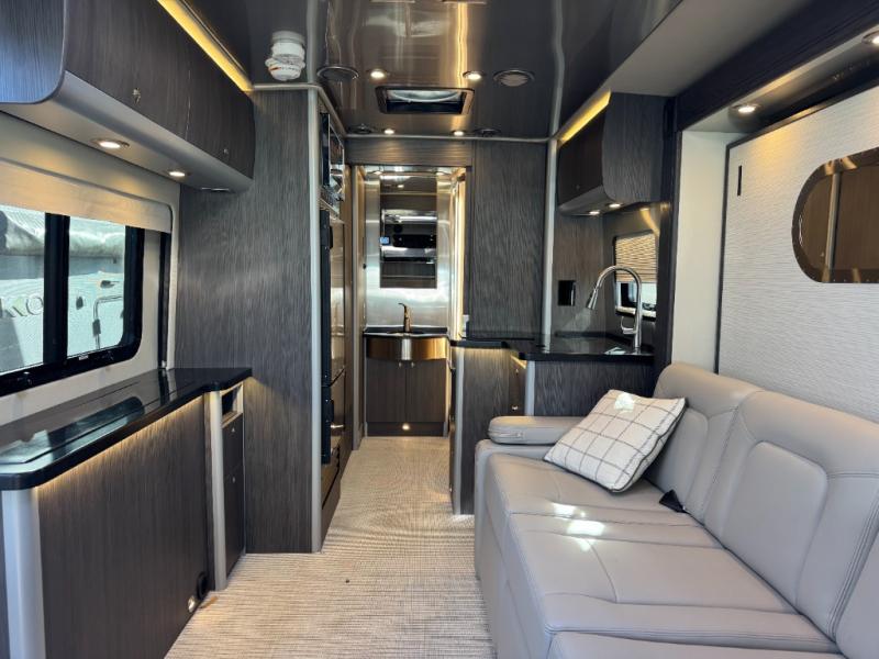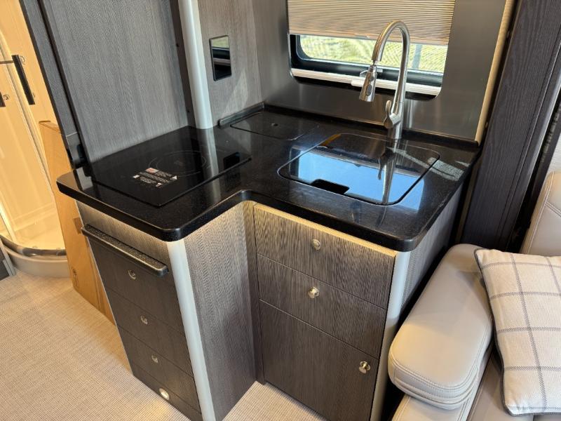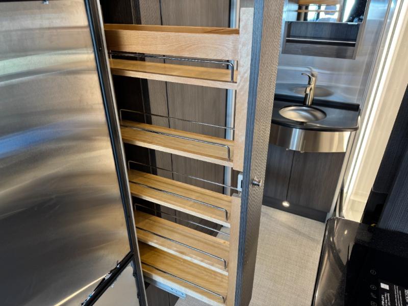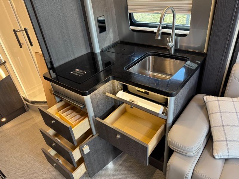 With the Atlas Class B+ diesel motorhome by Airstream, you not only get an enduring Airstream design, conveniences and luxury features, but also the proven Mercedes-Benz safety systems and performance. The coach is built with Azdel composite roof, floor, and wall material, a vacuum-bonded aluminum framed floor, radius walls, a fiberglass crowned roof for extra headroom, trimless smooth fiberglass body seams, and molded fiberglass front and rear caps. And the Mercedes-Benz 2.0L turbo charged 4-cyliner high-output diesel engine will power your many excursions! The main cabin offers adjustable LED lighting, flush-mount cabinet hardware and soft close doors, a Froli ergonomic bed support system for a good night's sleep. You will enjoy Ultraleather seating, USB charging ports for your electronics, marine woven synthetic flooring, and matte finish laminate cabinetry to mention a few highlights.