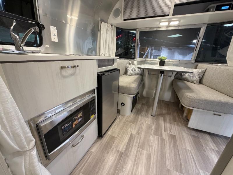 The lightweight, easy-to-maneuver Bambi travel trailer by Airstream is your ticket to outdoor fun and adventure. The panoramic front windows with blackout shades will provide natural lighting during the day, and privacy at night, and the seamless vinyl flooring will be easy to keep clean. Each model includes an efficient A/C with a heat strip, roll top overhead cabinets, and Performatex dinette cushions that are stain resistant. You will appreciate the 12V USB-A and USB-C ports to keep your devices charged, and the 24" 12V HDTV will provide entertainment when the weather isn't cooperating. The Bambi travel trailers also include a powered hitch jack with a light, roller shades, and an optional solar charging system for off-grid capabilities!