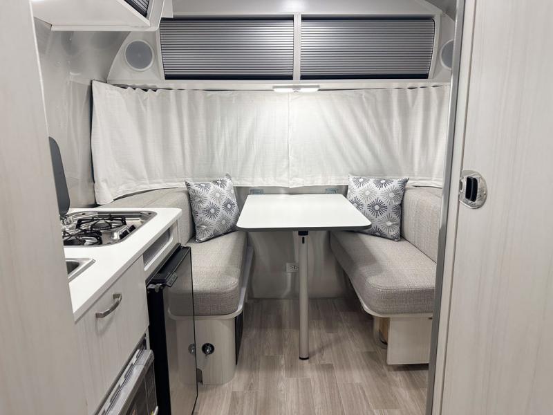 The lightweight, easy-to-maneuver Bambi travel trailer by Airstream is your ticket to outdoor fun and adventure. The panoramic front windows with blackout shades will provide natural lighting during the day, and privacy at night, and the seamless vinyl flooring will be easy to keep clean. Each model includes an efficient A/C with a heat strip, roll top overhead cabinets, and Performatex dinette cushions that are stain resistant. You will appreciate the 12V USB-A and USB-C ports to keep your devices charged, and the 24" 12V HDTV will provide entertainment when the weather isn't cooperating. The Bambi travel trailers also include a powered hitch jack with a light, roller shades, and an optional solar charging system for off-grid capabilities!