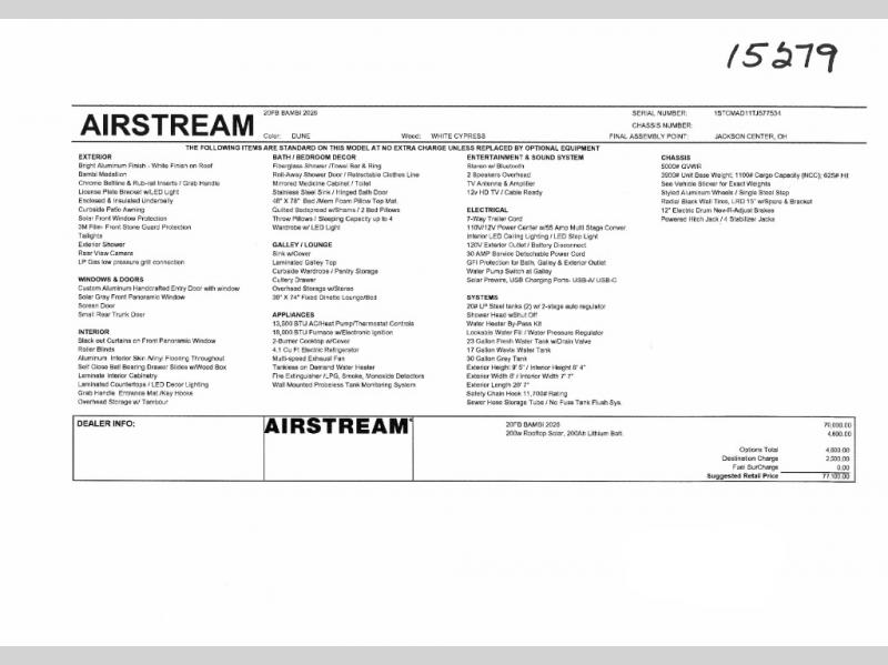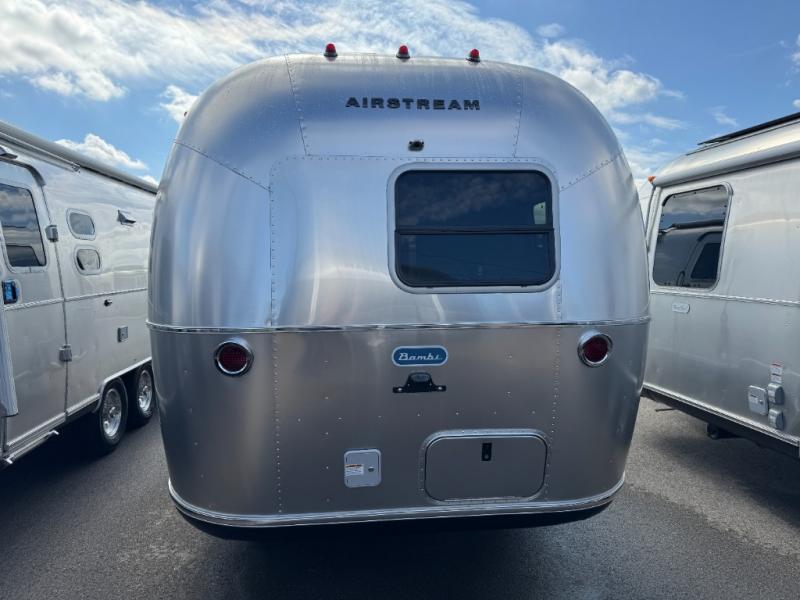 The lightweight, easy-to-maneuver Bambi travel trailer by Airstream is your ticket to outdoor fun and adventure. The panoramic front windows with blackout shades will provide natural lighting during the day, and privacy at night, and the seamless vinyl flooring will be easy to keep clean. Each model includes an efficient A/C with a heat strip, roll top overhead cabinets, and Performatex dinette cushions that are stain resistant. You will appreciate the 12V USB-A and USB-C ports to keep your devices charged, and the 24" 12V HDTV will provide entertainment when the weather isn't cooperating. The Bambi travel trailers also include a powered hitch jack with a light, roller shades, and an optional solar charging system for off-grid capabilities!