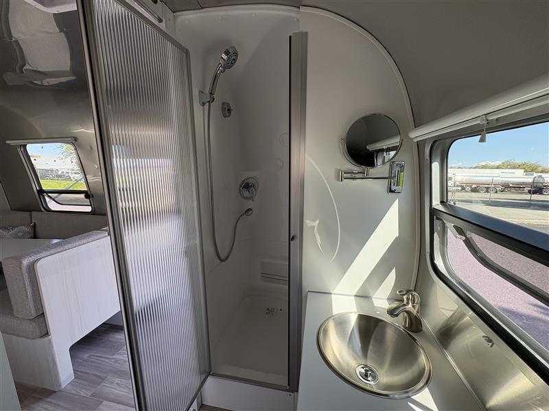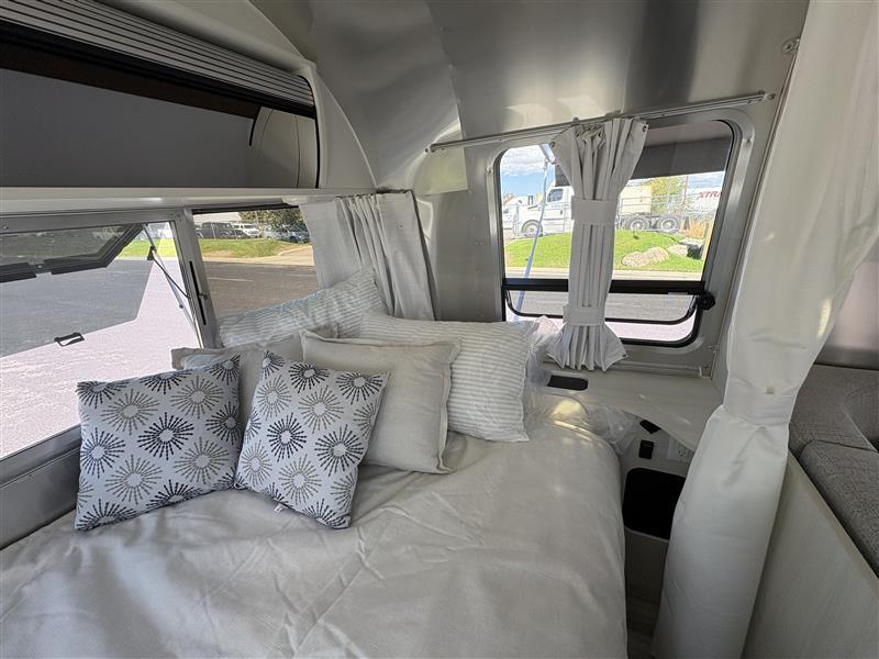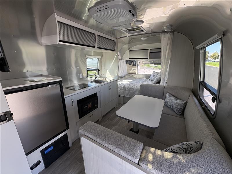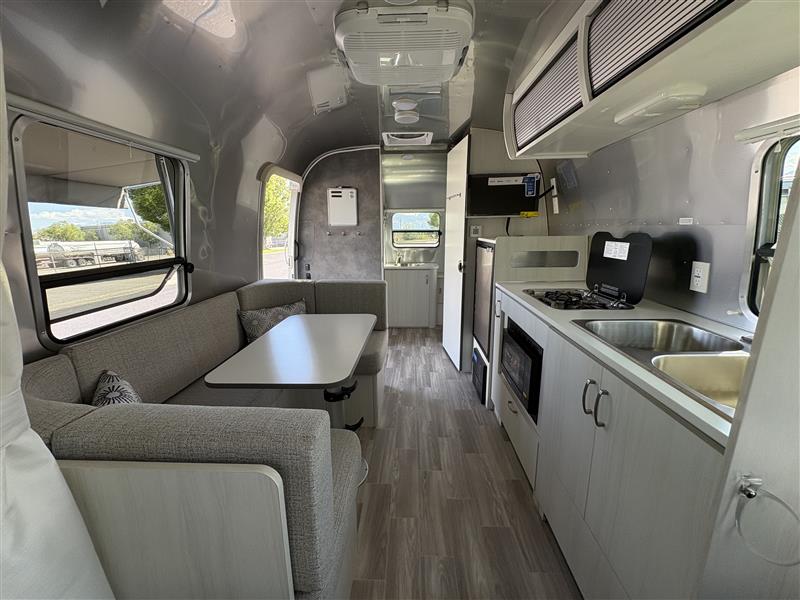 The lightweight, easy-to-maneuver Bambi travel trailer by Airstream is your ticket to outdoor fun and adventure. The panoramic front windows with blackout shades will provide natural lighting during the day, and privacy at night, and the seamless vinyl flooring will be easy to keep clean. Each model includes an efficient A/C with a heat strip, roll top overhead cabinets, and Performatex dinette cushions that are stain resistant. You will appreciate the 12V USB-A and USB-C ports to keep your devices charged, and the 24" 12V HDTV will provide entertainment when the weather isn't cooperating. The Bambi travel trailers also include a powered hitch jack with a light, roller shades, and an optional solar charging system for off-grid capabilities!