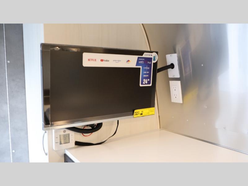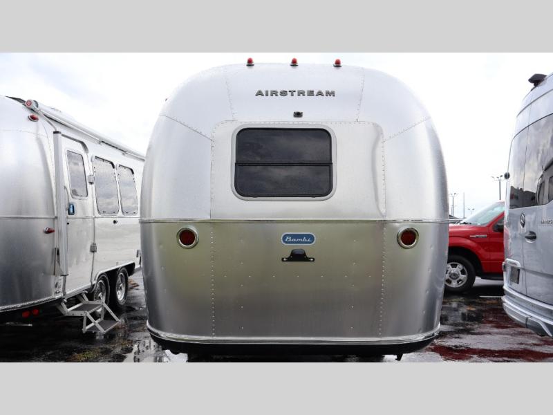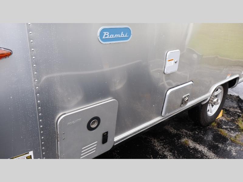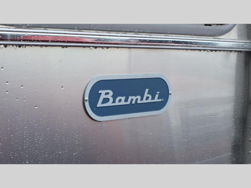The lightweight, easy-to-maneuver Bambi travel trailer by Airstream is your ticket to outdoor fun and adventure. The panoramic front windows with blackout shades will provide natural lighting during the day, and privacy at night, and the seamless vinyl flooring will be easy to keep clean. Each model includes an efficient A/C with a heat strip, roll top overhead cabinets, and Performatex dinette cushions that are stain resistant. You will appreciate the 12V USB-A and USB-C ports to keep your devices charged, and the 24" 12V HDTV will provide entertainment when the weather isn't cooperating. The Bambi travel trailers also include a powered hitch jack with a light, roller shades, and an optional solar charging system for off-grid capabilities!