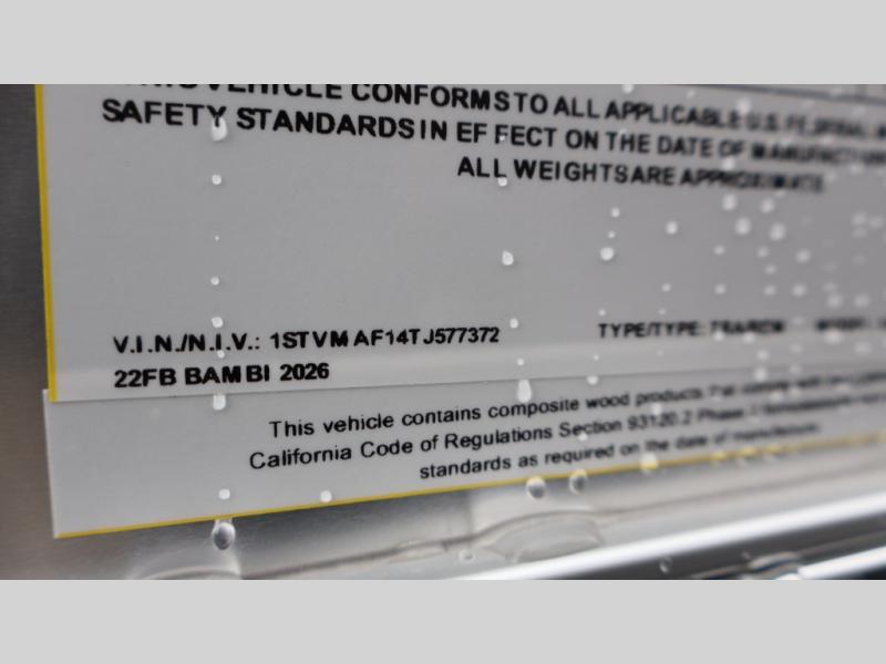 Are you looking for a lightweight travel trailer with a little more space to stretch out? This Bambi 22FB is the one! The full rear bath spans the entire rear of this unit, plus there is a shower with a seat and a window that opens to let fresh air in. Head to the full kitchen to prepare lunch on the two burner cooktop or in the microwave oven, and there is a double stainless steel sink for easy clean-up. The pillow top memory foam mattress in the front of this unit will provide a great night's rest, and you can make it a movie night with the HDTV.