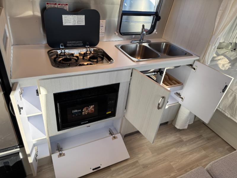 The lightweight, easy-to-maneuver Bambi travel trailer by Airstream is your ticket to outdoor fun and adventure. The panoramic front windows with blackout shades will provide natural lighting during the day, and privacy at night, and the seamless vinyl flooring will be easy to keep clean. Each model includes an efficient A/C with a heat strip, roll top overhead cabinets, and Performatex dinette cushions that are stain resistant. You will appreciate the 12V USB-A and USB-C ports to keep your devices charged, and the 24" 12V HDTV will provide entertainment when the weather isn't cooperating. The Bambi travel trailers also include a powered hitch jack with a light, roller shades, and an optional solar charging system for off-grid capabilities!