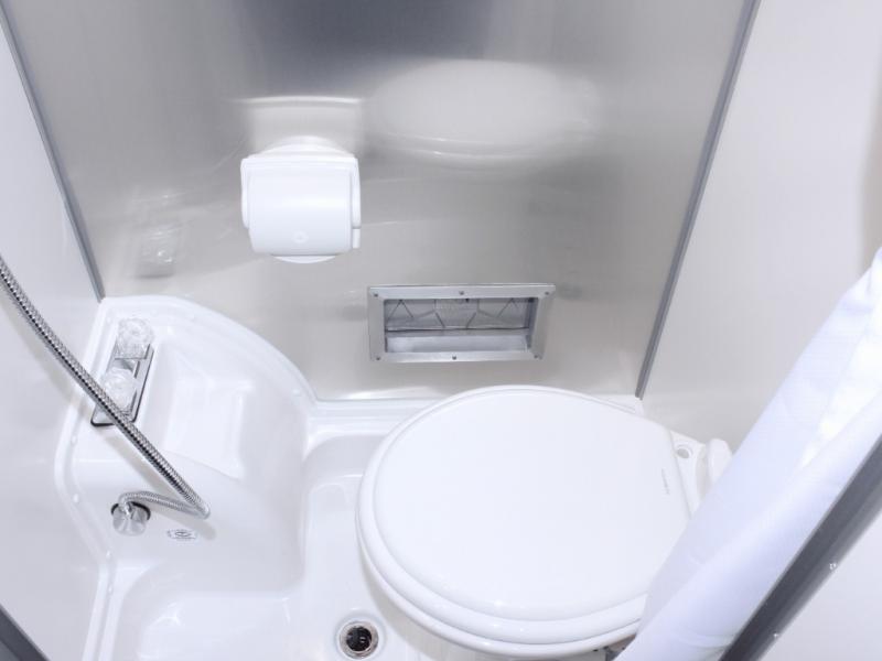 Step inside and discover a versatile living space designed to adapt to your lifestyle. The rear U-shaped seating area easily converts into a full sleeping space for two, while the front galley kitchen is equipped with everything you need—two-burner stove, sink, refrigerator, and storage—to prepare meals on the go. A wet bath with shower and toilet ensures you stay fresh no matter how far from civilization you roam.
