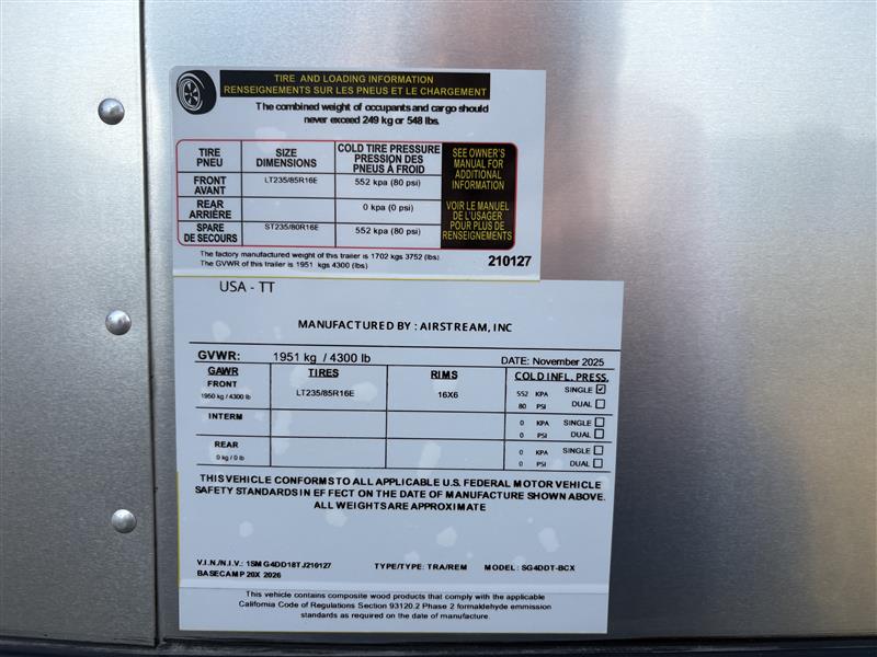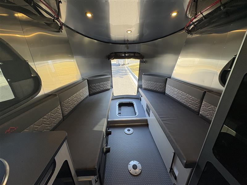 With any Basecamp travel trailer by Airstream, adventure knows no limits! The aggressive departure angle and large wheels are made specifically for handling uneven terrain, plus you can easily tow them with a variety of mid-size SUVs. The exterior includes a hand painted chassis, fluorocarbon treated UV protected aluminum, and a custom aluminum handcrafted entry door with window. You'll also find handcrafted welded extruded aluminum window frames, a torsion axle with shock absorbers, and Nev-R Adjust brakes. The interior offers Airstream Connected pre-wire, complete aluminum interior walls and ceiling, durable stain resistant cushions, plus seamless vinyl flooring for durability and easy cleanup after all the adventures. A few features you will enjoy are the SmartPlug 30 Amp shore power, the aluminum Aircraft L-track storage system in the floor, and the optional solar charging system for off-grid capabilities!