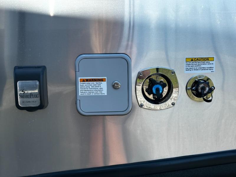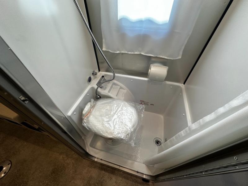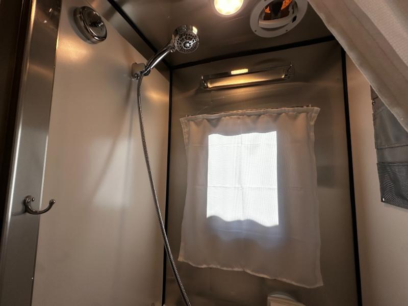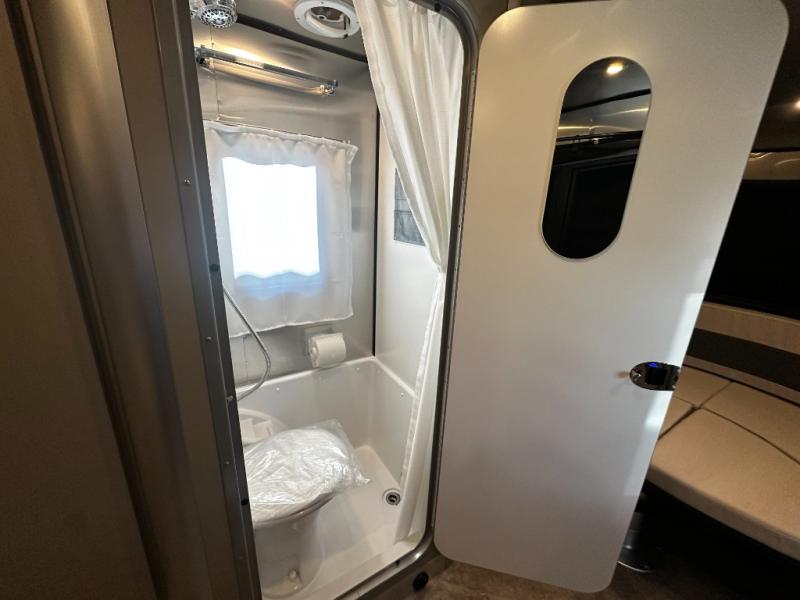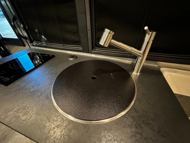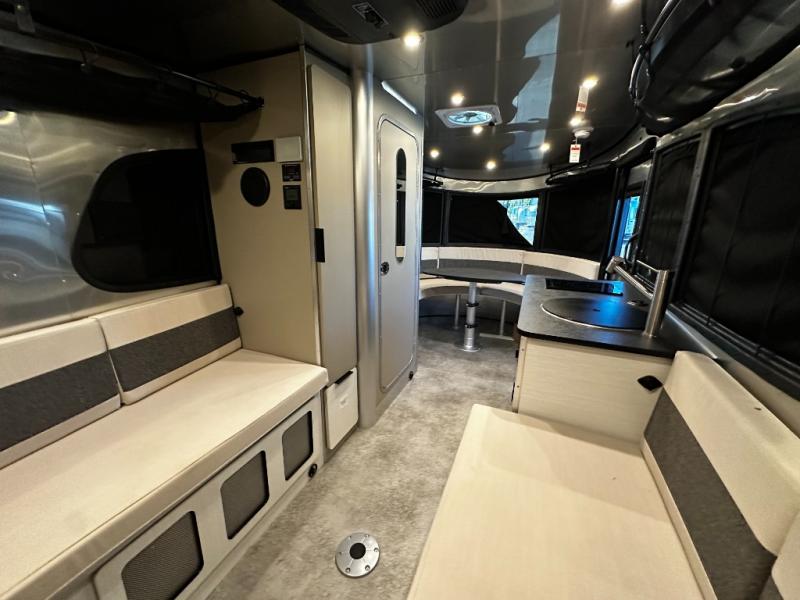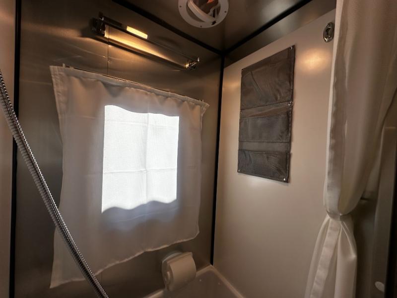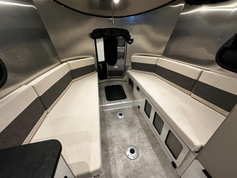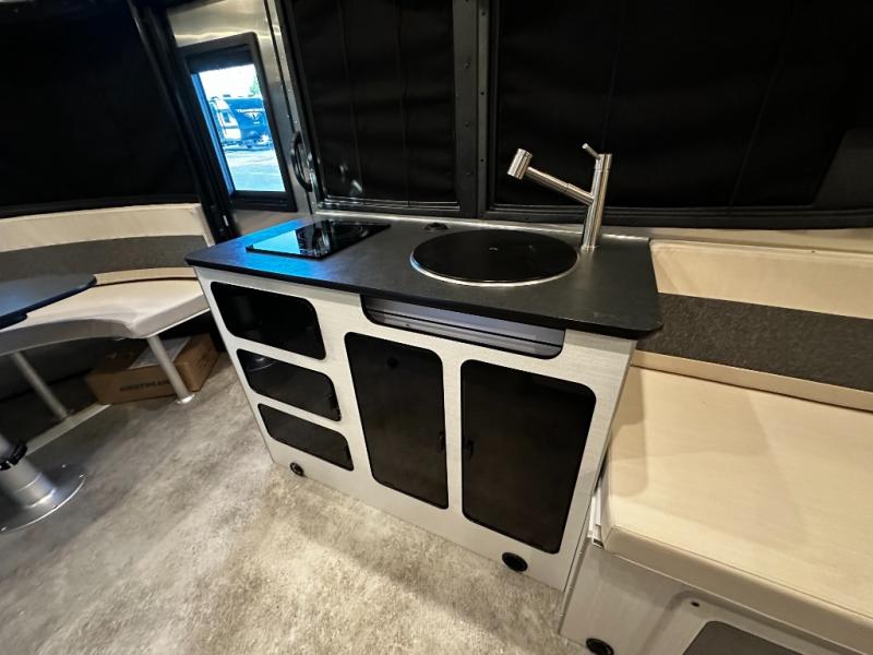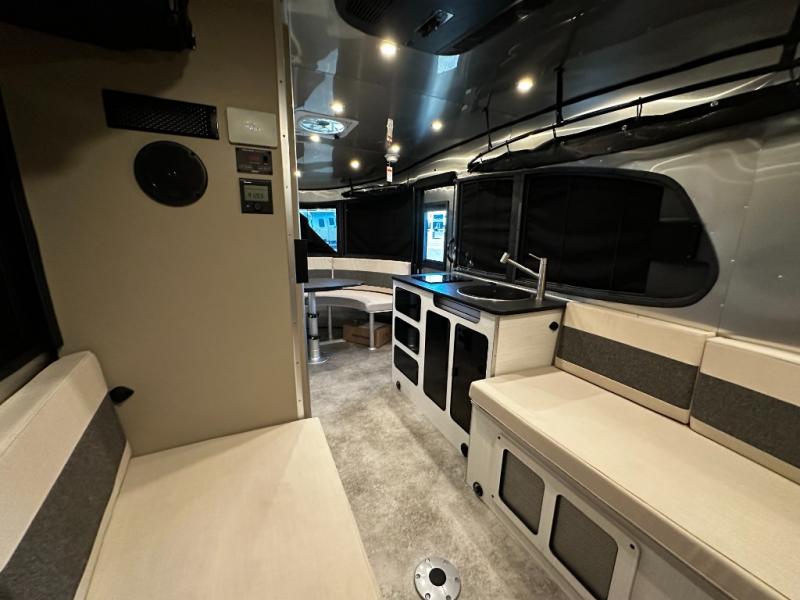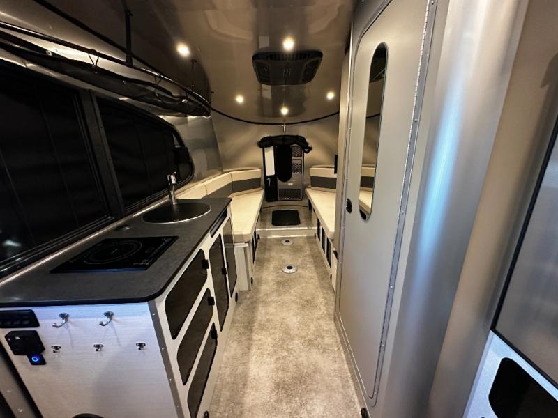 The fully equipped galley kitchen includes a two-burner cooktop, microwave, stainless-steel sink, and refrigerator, making meal prep simple no matter where you are. The wet bath offers a functional and private space to stay refreshed during off-grid adventures. Every detail of the Basecamp 20XE reflects Airstream’s commitment to quality, durability, and innovative design.