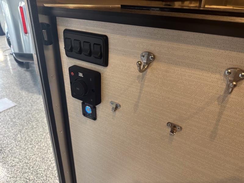 You can go farther than ever with the Basecamp Xe by Airstream! This travel tailer is powered by a 30A electrical system with a 3,000W inverter, a 10.3kWh lithium Battle Born battery pack and an impressive 600-watts of roof-mounted solar panels. There is coated stone guard protection plus a 3-inch lift kit with off-road tires that will help protect against rock and debris when traveling tough terrain. Head inside to find all the comforts of home, including a space-saving wet bath, a flexible living space, blackout shades, and seamless vinyl flooring. There are also USB ports to keep your electronics charged plus a JBL Audio stereo with Bluetooth connectivity and three speakers so you can listen to your favorite tunes!