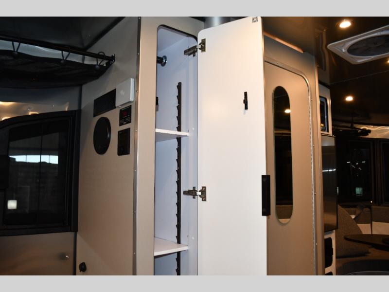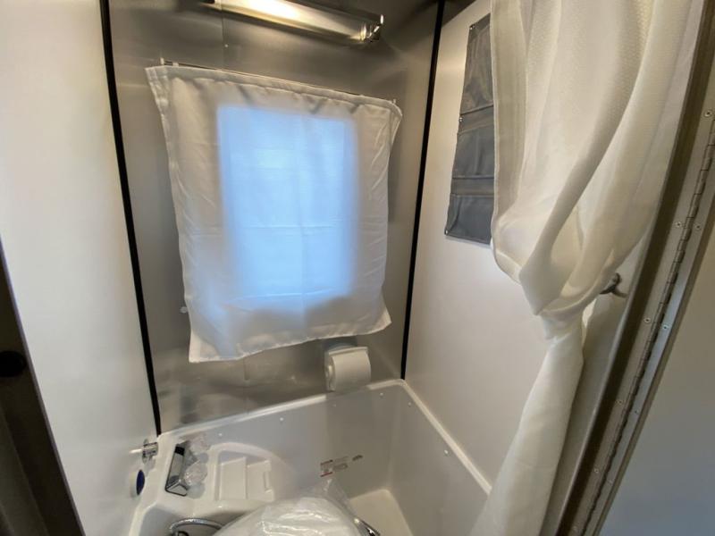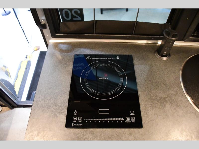Inside, the Basecamp 20XE features a modern, open-concept interior designed for adaptability. Flexible seating and sleeping configurations allow you to transition easily from travel mode to relaxation mode. Durable, easy-to-clean materials make it perfect for bringing along outdoor gear, bikes, or adventure equipment, while large windows provide panoramic views and natural light.