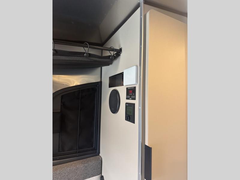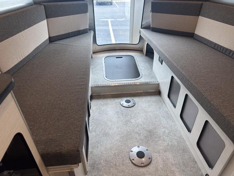 Chart a new map with this travel trailer in tow! Once you arrive at your destination, you can unload your gear, then start lunch on the single burner induction cooktop. An all-electric refrigerator lets you store cold items, and an optional microwave can be added for added convenience. You'll find bench seating in the back with removable tables that can be adjusted to different heights and directions. When it's time for bed, the benches can be converted to a half bed on one side, a full bed that spans the back of the unit, or a split sleeping area. A rear door gives you quick and easy access to your built-in floor storage with a drain, doubling it as a cooler!