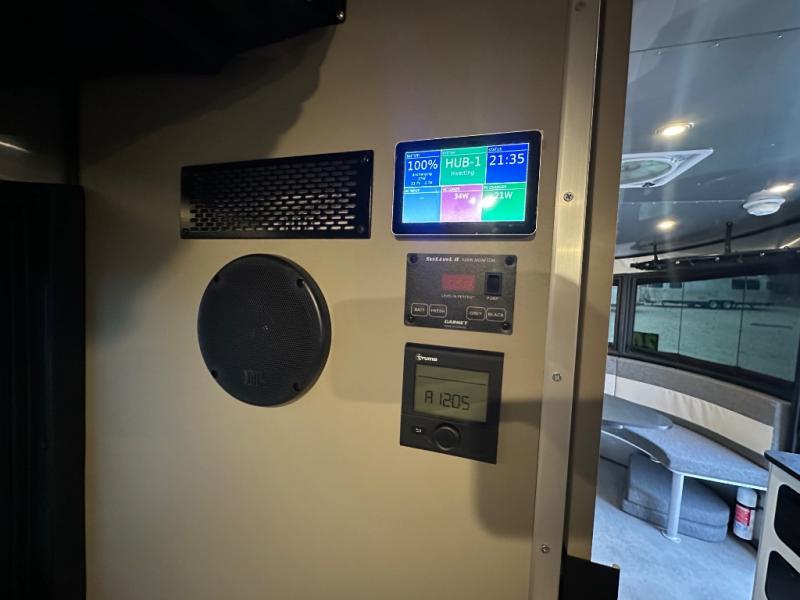 You can go farther than ever with the Basecamp Xe by Airstream! This travel tailer is powered by a 30A electrical system with a 3,000W inverter, a 10.3kWh lithium Battle Born battery pack and an impressive 600-watts of roof-mounted solar panels. There is coated stone guard protection plus a 3-inch lift kit with off-road tires that will help protect against rock and debris when traveling tough terrain. Head inside to find all the comforts of home, including a space-saving wet bath, a flexible living space, blackout shades, and seamless vinyl flooring. There are also USB ports to keep your electronics charged plus a JBL Audio stereo with Bluetooth connectivity and three speakers so you can listen to your favorite tunes!