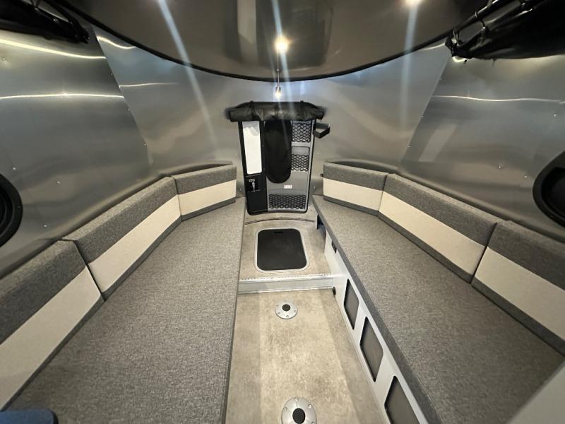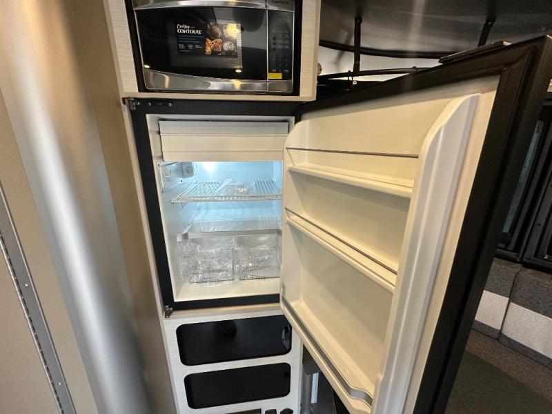 Chart a new map with this travel trailer in tow! Once you arrive at your destination, you can unload your gear, then start lunch on the single burner induction cooktop. An all-electric refrigerator lets you store cold items, and an optional microwave can be added for added convenience. You'll find bench seating in the back with removable tables that can be adjusted to different heights and directions. When it's time for bed, the benches can be converted to a half bed on one side, a full bed that spans the back of the unit, or a split sleeping area. A rear door gives you quick and easy access to your built-in floor storage with a drain, doubling it as a cooler!