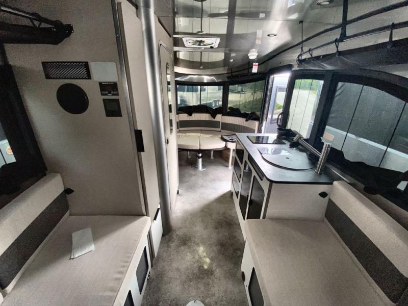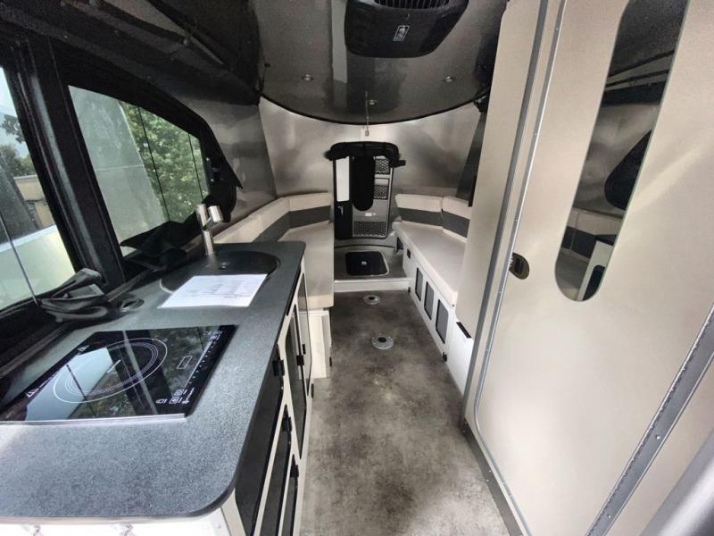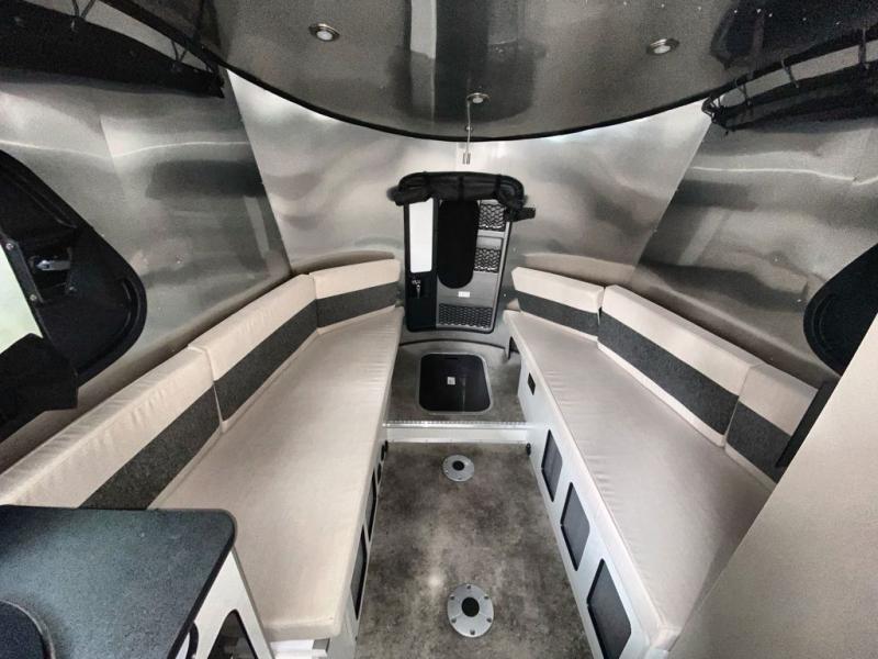 Chart a new map with this travel trailer in tow! Once you arrive at your destination, you can unload your gear, then start lunch on the single burner induction cooktop. An all-electric refrigerator lets you store cold items, and an optional microwave can be added for added convenience. You'll find bench seating in the back with removable tables that can be adjusted to different heights and directions. When it's time for bed, the benches can be converted to a half bed on one side, a full bed that spans the back of the unit, or a split sleeping area. A rear door gives you quick and easy access to your built-in floor storage with a drain, doubling it as a cooler!