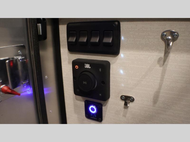 You can go farther than ever with the Basecamp Xe by Airstream! This travel tailer is powered by a 30A electrical system with a 3,000W inverter, a 10.3kWh lithium Battle Born battery pack and an impressive 600-watts of roof-mounted solar panels. There is coated stone guard protection plus a 3-inch lift kit with off-road tires that will help protect against rock and debris when traveling tough terrain. Head inside to find all the comforts of home, including a space-saving wet bath, a flexible living space, blackout shades, and seamless vinyl flooring. There are also USB ports to keep your electronics charged plus a JBL Audio stereo with Bluetooth connectivity and three speakers so you can listen to your favorite tunes!