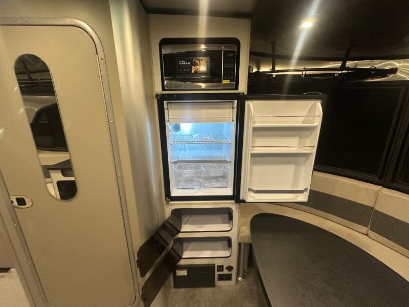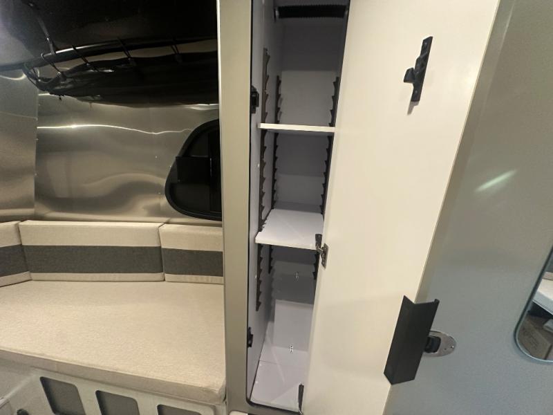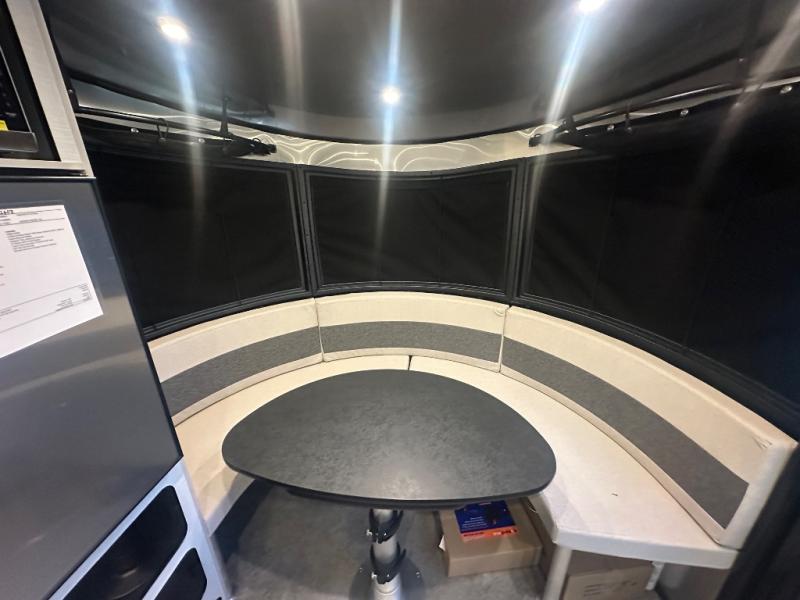 Chart a new map with this travel trailer in tow! Once you arrive at your destination, you can unload your gear, then start lunch on the single burner induction cooktop. An all-electric refrigerator lets you store cold items, and an optional microwave can be added for added convenience. You'll find bench seating in the back with removable tables that can be adjusted to different heights and directions. When it's time for bed, the benches can be converted to a half bed on one side, a full bed that spans the back of the unit, or a split sleeping area. A rear door gives you quick and easy access to your built-in floor storage with a drain, doubling it as a cooler!