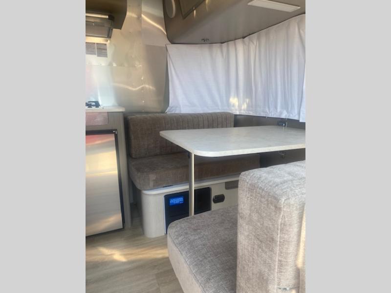 You'll always have a stylish and comfortable place to stay with the Airstream Caravel travel trailer! The manual Zip Dee patio awning can be paired with matching optional window awnings that can help keep the interior cool and private. The rear polished bumper with storage will help you keep your tools, cords, and more hidden away in a bonus storage space, and the JL Audio stereo with Bluetooth connectivity and four speakers, surround sound, and subwoofer will play your music throughout the trailer. You can stay powered while off the grid If you add the optional solar package, depending on the model you choose, and the blackout curtains will let you have privacy when you head to bed. The stainless steel front stone guard protection will prevent damage to the body of your trailer while towing, and the panoramic windows will make the interior fresh and bright with natural sunlight.