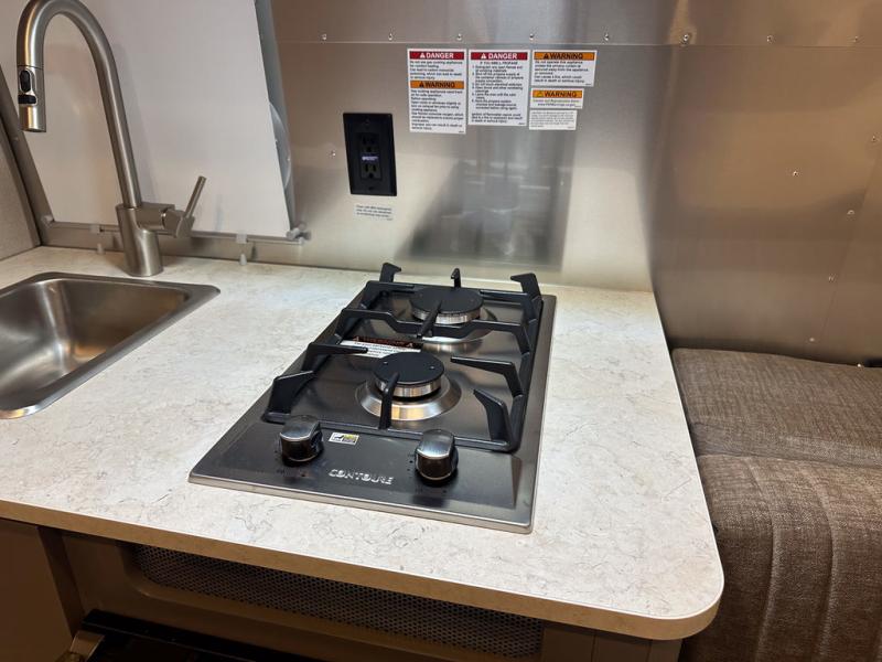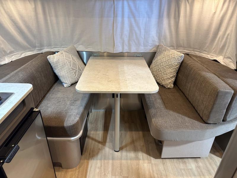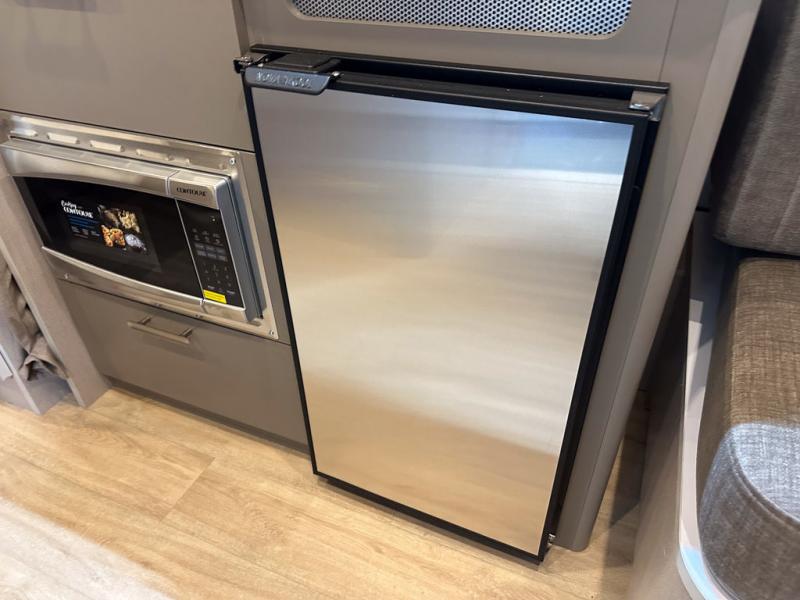 You'll always have a stylish and comfortable place to stay with the Airstream Caravel travel trailer! The manual Zip Dee patio awning can be paired with matching optional window awnings that can help keep the interior cool and private. The rear polished bumper with storage will help you keep your tools, cords, and more hidden away in a bonus storage space, and the JL Audio stereo with Bluetooth connectivity and four speakers, surround sound, and subwoofer will play your music throughout the trailer. You can stay powered while off the grid If you add the optional solar package, depending on the model you choose, and the blackout curtains will let you have privacy when you head to bed. The stainless steel front stone guard protection will prevent damage to the body of your trailer while towing, and the panoramic windows will make the interior fresh and bright with natural sunlight.