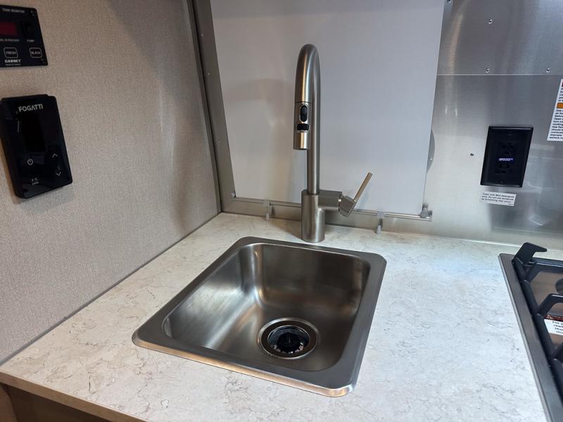 This easy-to-tow Caravel travel trailer is super capable and super durable! The kitchen features a two-burner gas cooktop, a stainless steel sink, a microwave, and a Baraldi cooking vent with light. You'll find storage space in the hanging closet next to the kitchen and the under-bed storage. And the pillowtop memory foam mattress is going to provide you with a very comfortable night of sleep.