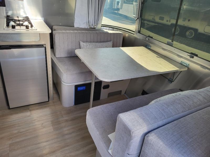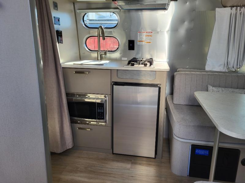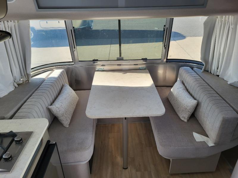 You'll always have a stylish and comfortable place to stay with the Airstream Caravel travel trailer! The manual Zip Dee patio awning can be paired with matching optional window awnings that can help keep the interior cool and private. The rear polished bumper with storage will help you keep your tools, cords, and more hidden away in a bonus storage space, and the JL Audio stereo with Bluetooth connectivity and four speakers, surround sound, and subwoofer will play your music throughout the trailer. You can stay powered while off the grid If you add the optional solar package, depending on the model you choose, and the blackout curtains will let you have privacy when you head to bed. The stainless steel front stone guard protection will prevent damage to the body of your trailer while towing, and the panoramic windows will make the interior fresh and bright with natural sunlight.