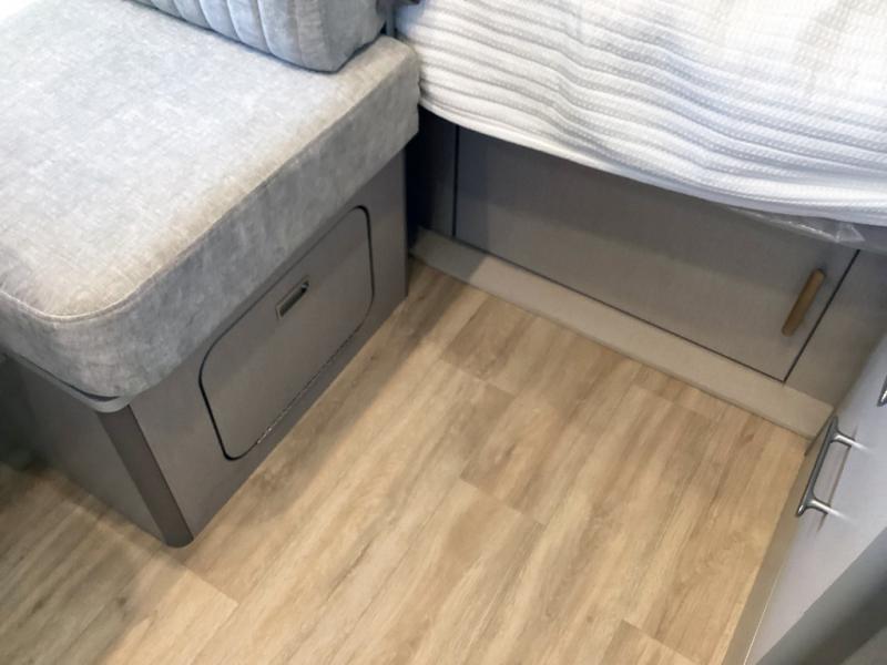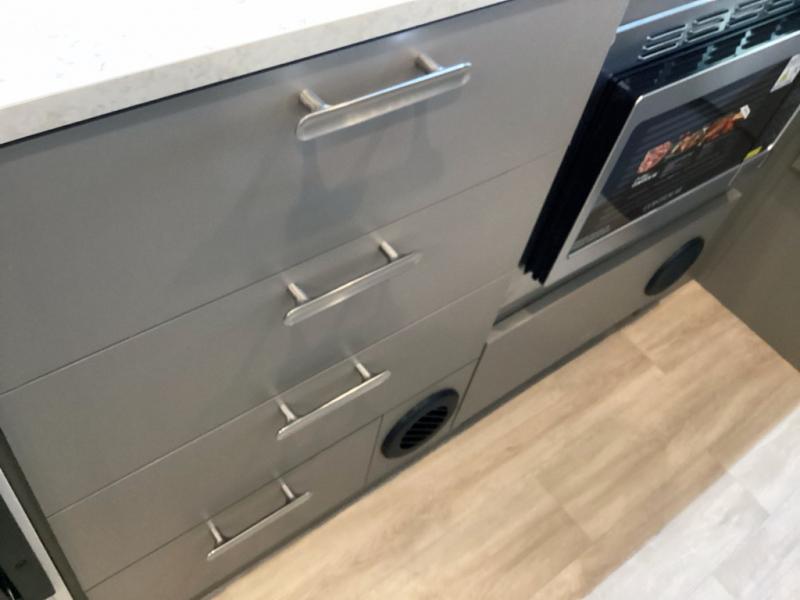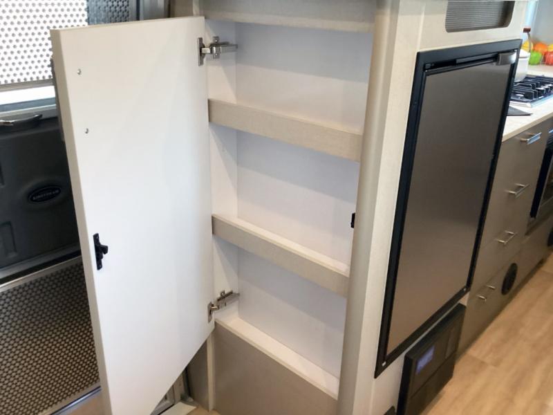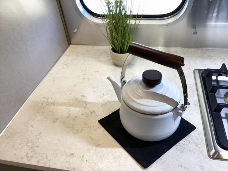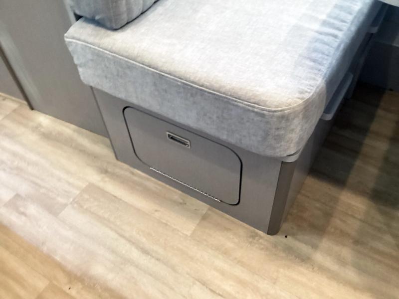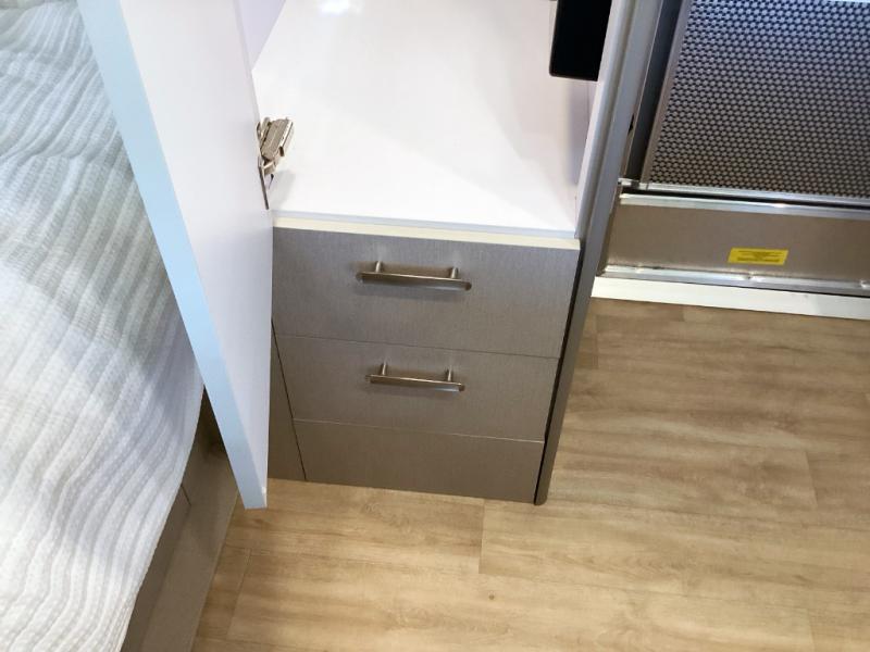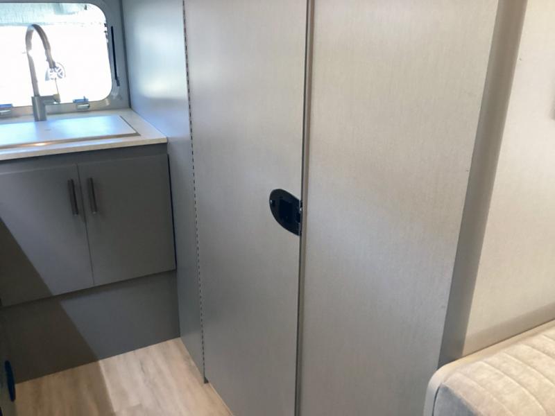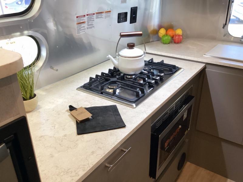 Would you like to enjoy unforgettable trips? If so, all you need is this Caravel travel trailer! The interior is outfitted with handcrafted marine-grade lite-ply laminated cabinetry, dimmable LED lighting, seamless vinyl flooring, and Ultraleather fabric on the furniture for a completely stylish and elegant look. The overhead storage has sliding doors for easy access, and the kitchen is quite engaging with its three-burner gas cooktop, microwave, stainless steel sink with Moen faucet, and Baraldi cooking vent with light. You can even use the LED reading lights at the pillowtop memory foam mattress to finish that last chapter before bed.