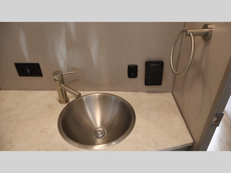 Would you like to enjoy unforgettable trips? If so, all you need is this Caravel travel trailer! The interior is outfitted with handcrafted marine-grade lite-ply laminated cabinetry, dimmable LED lighting, seamless vinyl flooring, and Ultraleather fabric on the furniture for a completely stylish and elegant look. The overhead storage has sliding doors for easy access, and the kitchen is quite engaging with its three-burner gas cooktop, microwave, stainless steel sink with Moen faucet, and Baraldi cooking vent with light. You can even use the LED reading lights at the pillowtop memory foam mattress to finish that last chapter before bed.