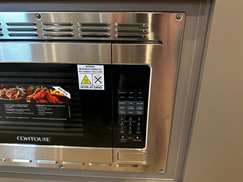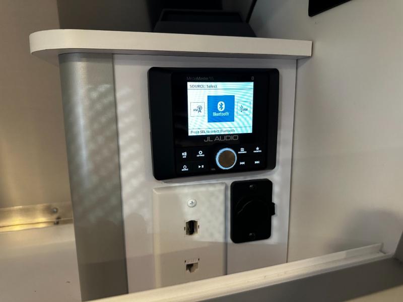 The fully equipped galley kitchen includes a two-burner cooktop, microwave, stainless-steel sink, and refrigerator, making it easy to enjoy home-cooked meals on the road. The wet bath is both compact and functional, giving you all the conveniences you need without taking up valuable living space. Premium materials, clever storage solutions, and well-placed lighting make every moment inside the Caravel 22FB comfortable and enjoyable.