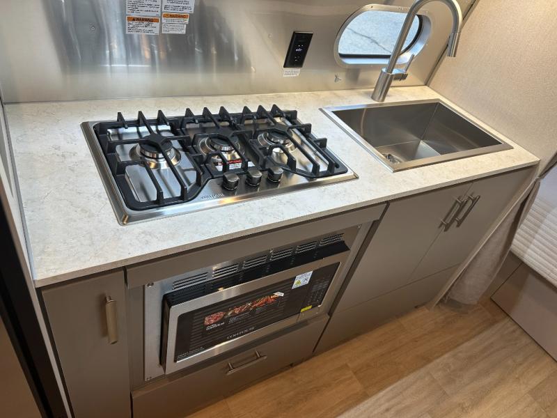 You'll always have a stylish and comfortable place to stay with the Airstream Caravel travel trailer! The manual Zip Dee patio awning can be paired with matching optional window awnings that can help keep the interior cool and private. The rear polished bumper with storage will help you keep your tools, cords, and more hidden away in a bonus storage space, and the JL Audio stereo with Bluetooth connectivity and four speakers, surround sound, and subwoofer will play your music throughout the trailer. You can stay powered while off the grid If you add the optional solar package, depending on the model you choose, and the blackout curtains will let you have privacy when you head to bed. The stainless steel front stone guard protection will prevent damage to the body of your trailer while towing, and the panoramic windows will make the interior fresh and bright with natural sunlight.