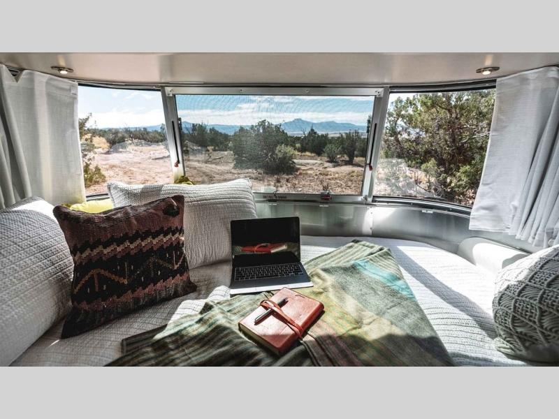 You'll always have a stylish and comfortable place to stay with the Airstream Caravel travel trailer! The manual Zip Dee patio awning can be paired with matching optional window awnings that can help keep the interior cool and private. The rear polished bumper with storage will help you keep your tools, cords, and more hidden away in a bonus storage space, and the JL Audio stereo with Bluetooth connectivity and four speakers, surround sound, and subwoofer will play your music throughout the trailer. You can stay powered while off the grid If you add the optional solar package, depending on the model you choose, and the blackout curtains will let you have privacy when you head to bed. The stainless steel front stone guard protection will prevent damage to the body of your trailer while towing, and the panoramic windows will make the interior fresh and bright with natural sunlight.