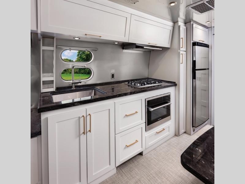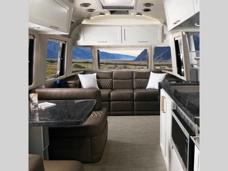 When it comes to full-time luxury living on the road, none other will do than a Classic travel trailer by Airstream. The sophisticated interior includes Ultraleather seating, a luxurious bathroom, handcrafted hardwood cabinetry, and a top-of-the-line kitchen with premium appliances. You will appreciate the rear-view monitoring system to easily park your trailer at the campsite, plus there are four powered heavy duty stabilizer jacks for easy set up. After you've unpacked, set up the powered ZipDee patio awning and adjust the LED dimmable awning light as you enjoy a cold drink. The Classic travel trailers also include QuietStream climate control that cools your unit quietly and evenly for a truly comfortable environment. Additional features you'll appreciate include a doorbell, a safe for valuables, two cushion ZipDee chairs, and premium environmental friendly insulation.