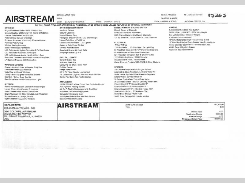 New 2026 Airstream Classic 28RB Twin Travel Trailer