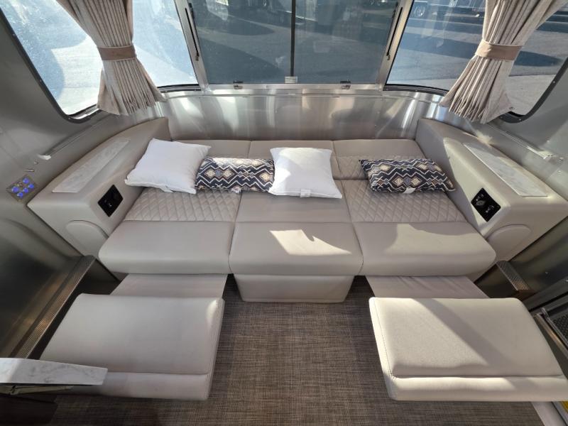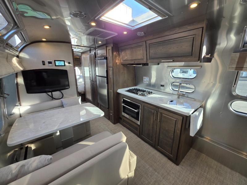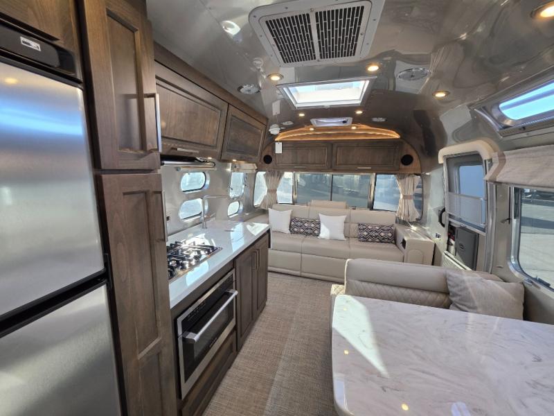When it comes to full-time luxury living on the road, none other will do than a Classic travel trailer by Airstream. The sophisticated interior includes Ultraleather seating, a luxurious bathroom, handcrafted hardwood cabinetry, and a top-of-the-line kitchen with premium appliances. You will appreciate the rear-view monitoring system to easily park your trailer at the campsite, plus there are four powered heavy duty stabilizer jacks for easy set up. After you've unpacked, set up the powered ZipDee patio awning and adjust the LED dimmable awning light as you enjoy a cold drink. The Classic travel trailers also include QuietStream climate control that cools your unit quietly and evenly for a truly comfortable environment. Additional features you'll appreciate include a doorbell, a safe for valuables, two cushion ZipDee chairs, and premium environmental friendly insulation.