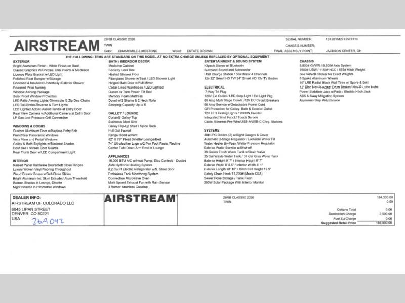New 2026 Airstream Classic 28RB Twin Travel Trailer